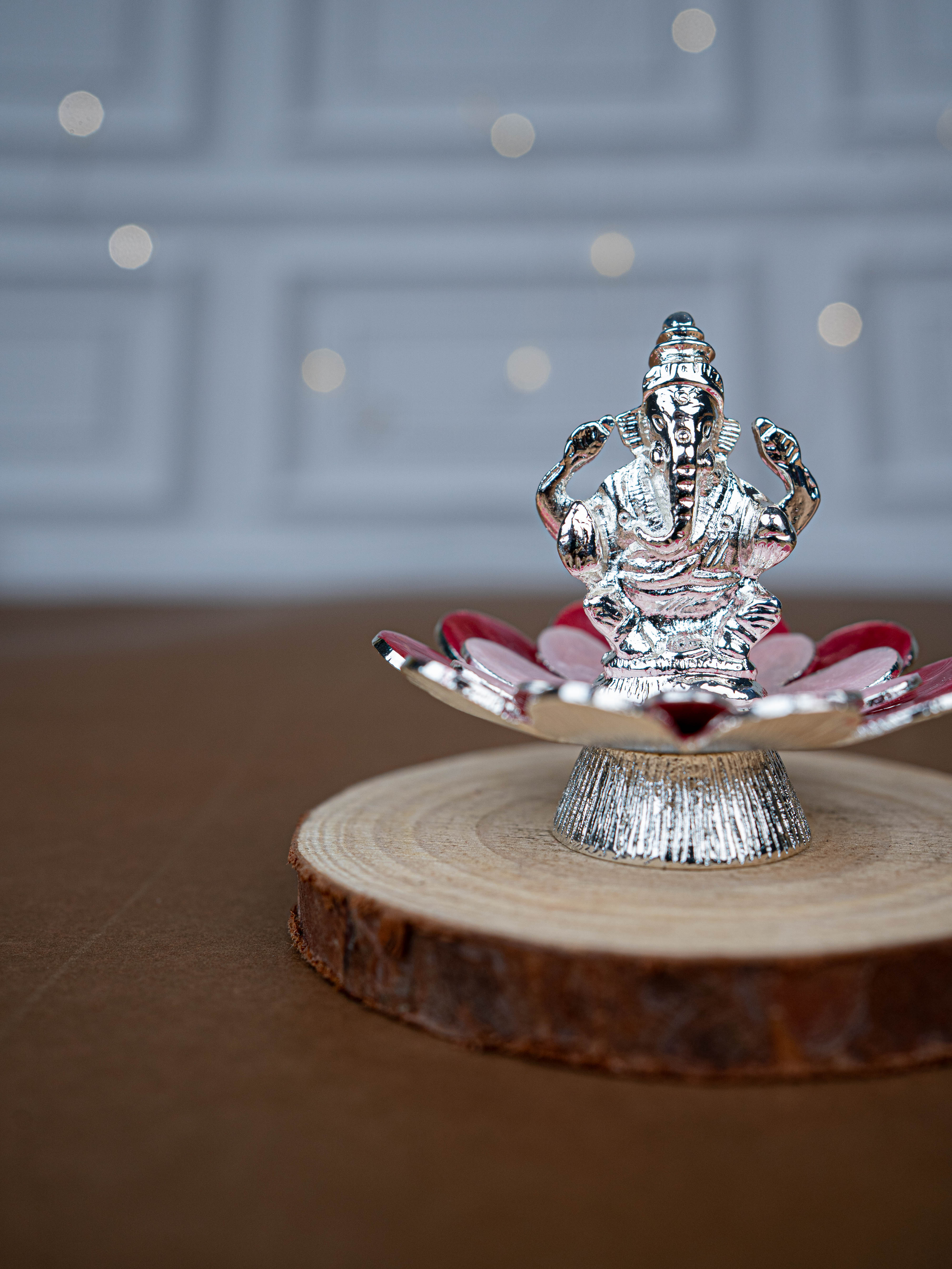 - Beautifully Crafted Idol of Lord Ganesha, Seated on Top of Stylized Lotus Flower, which is Symbolic of Purity.