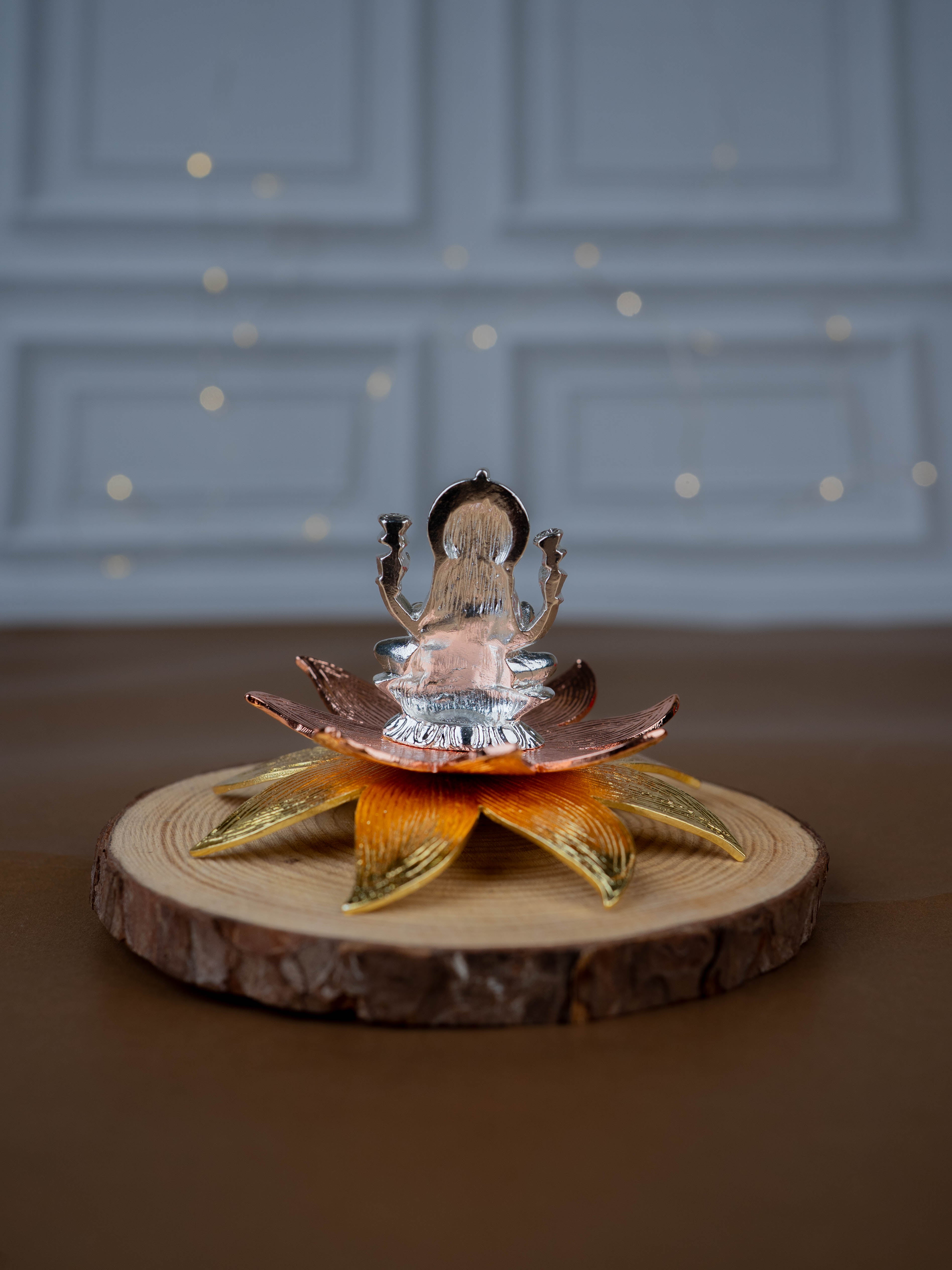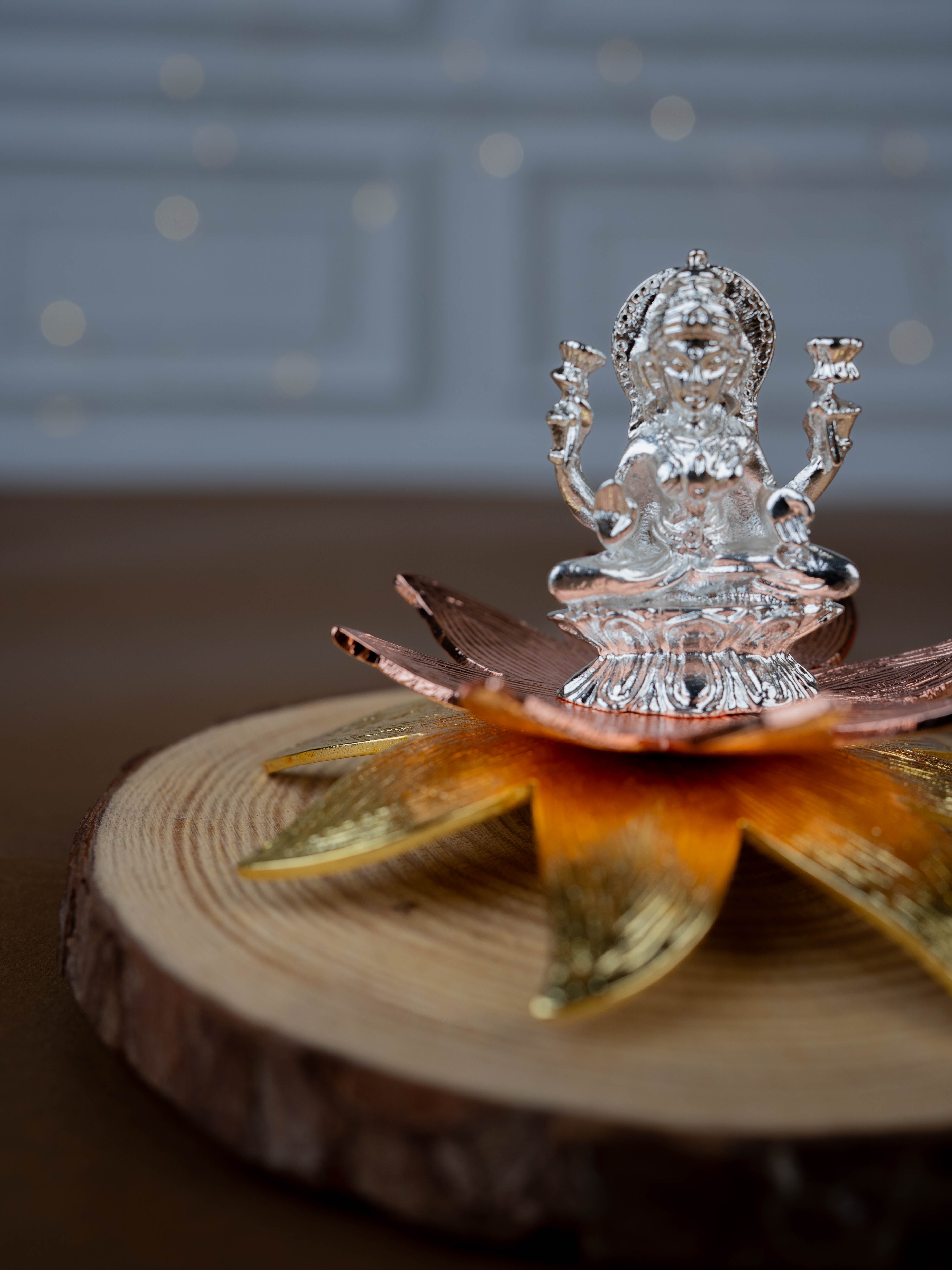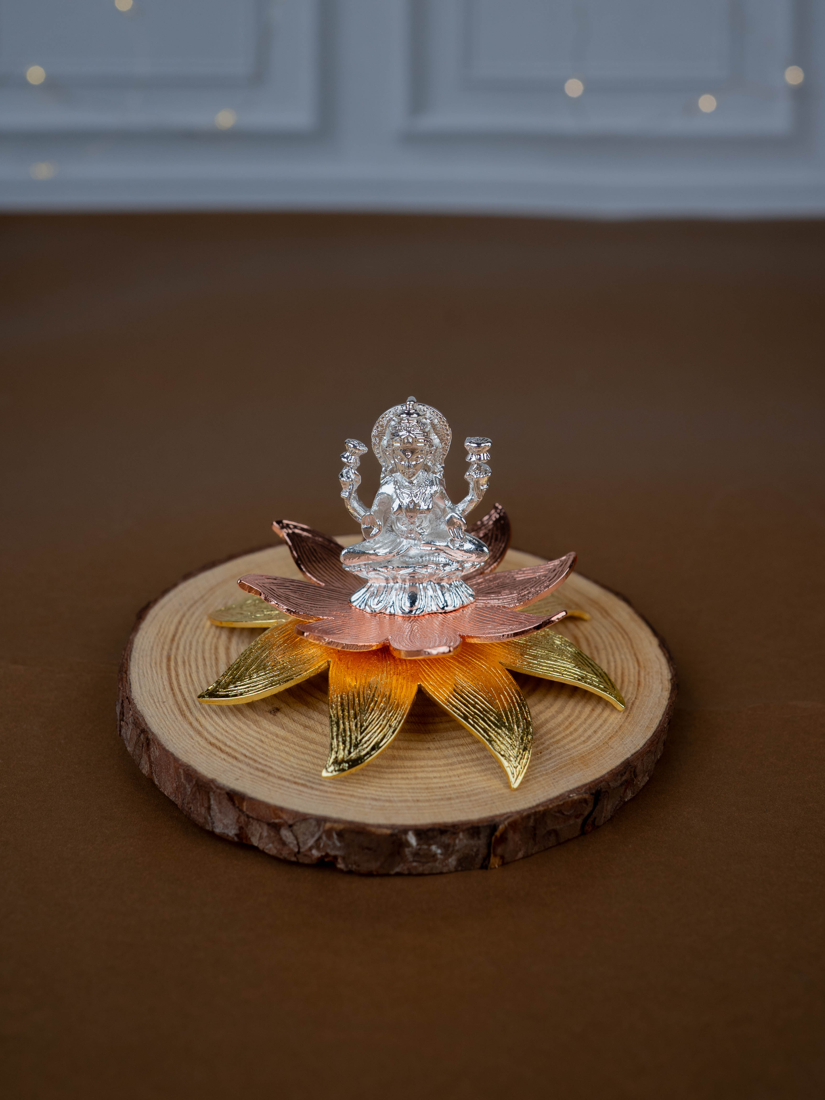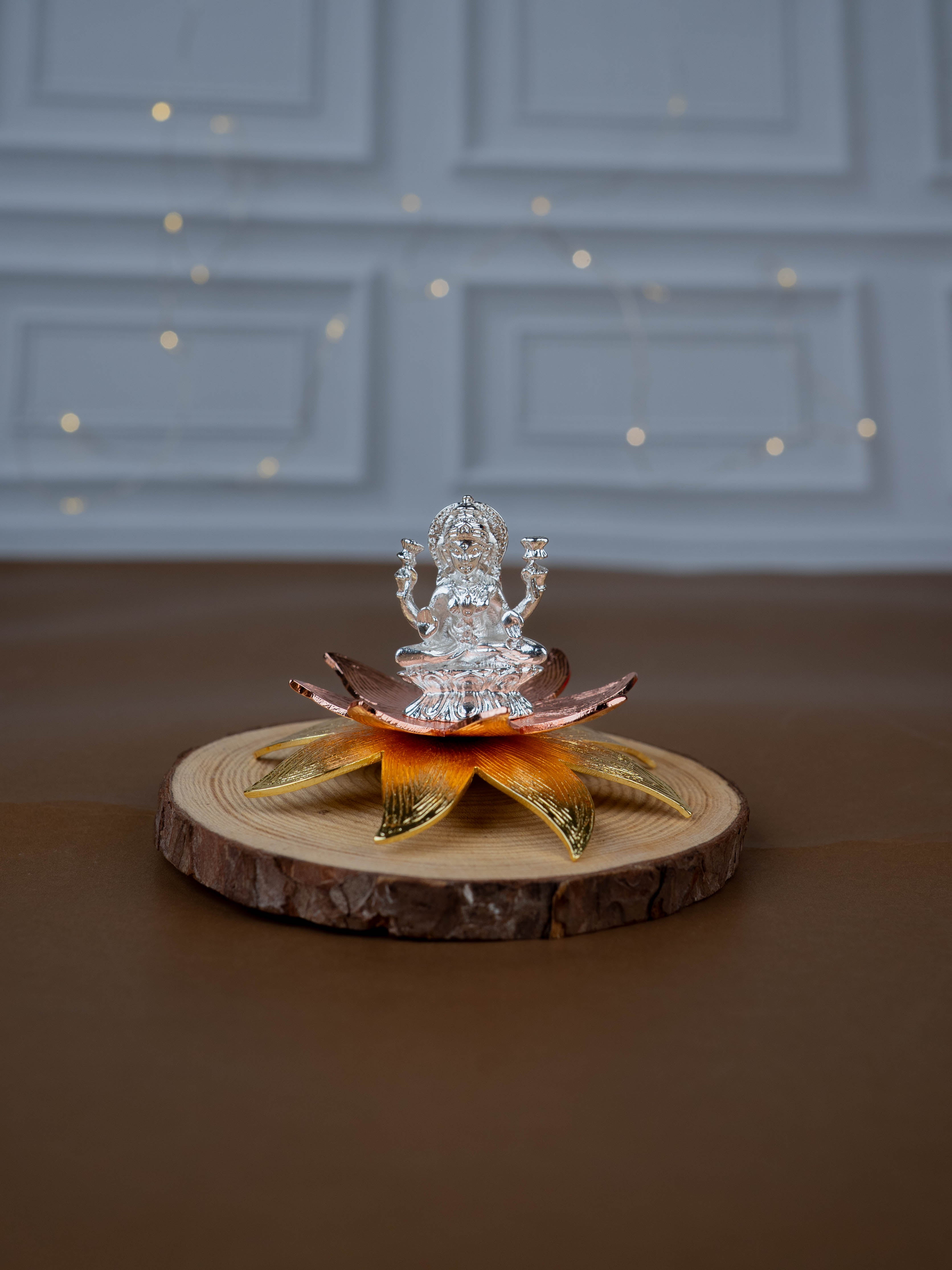 - Beautifully Crafted Idol of Lord Lakshmi, Seated on Top of Stylized Lotus Flower, which is Symbolic of Purity.
