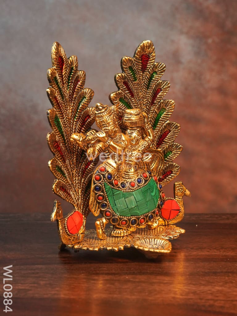 - The idol of Radhe Krishna is made of white metal with an oxidized finish.
