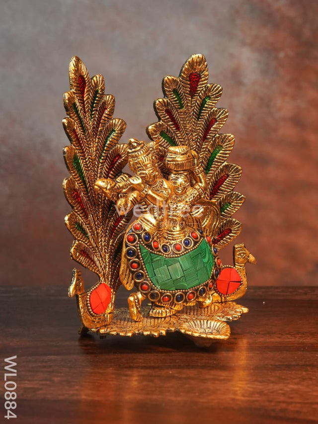- Lord Krishna is playing a flute and is also accompanied by Radha with 2 peacocks in the background.