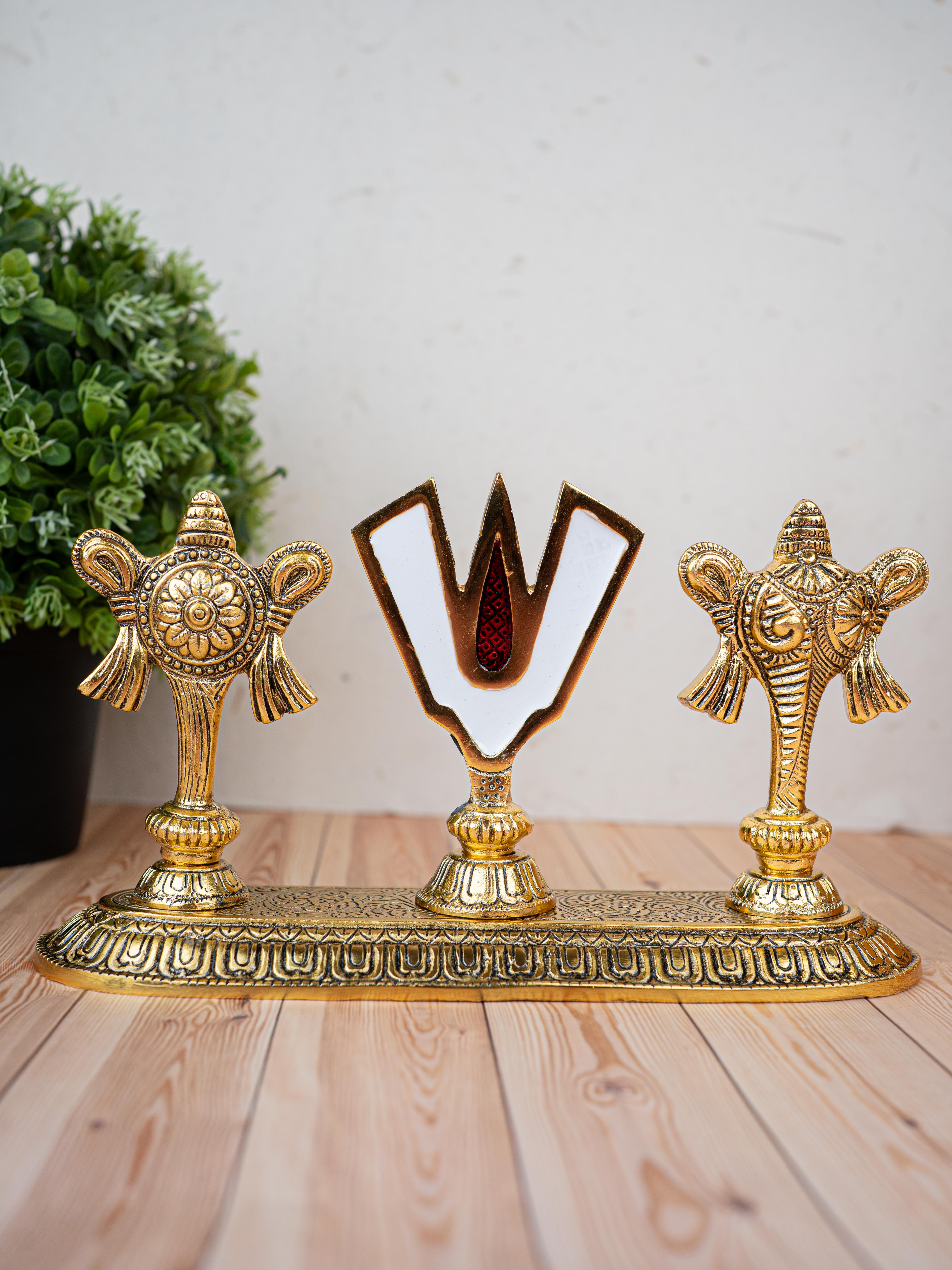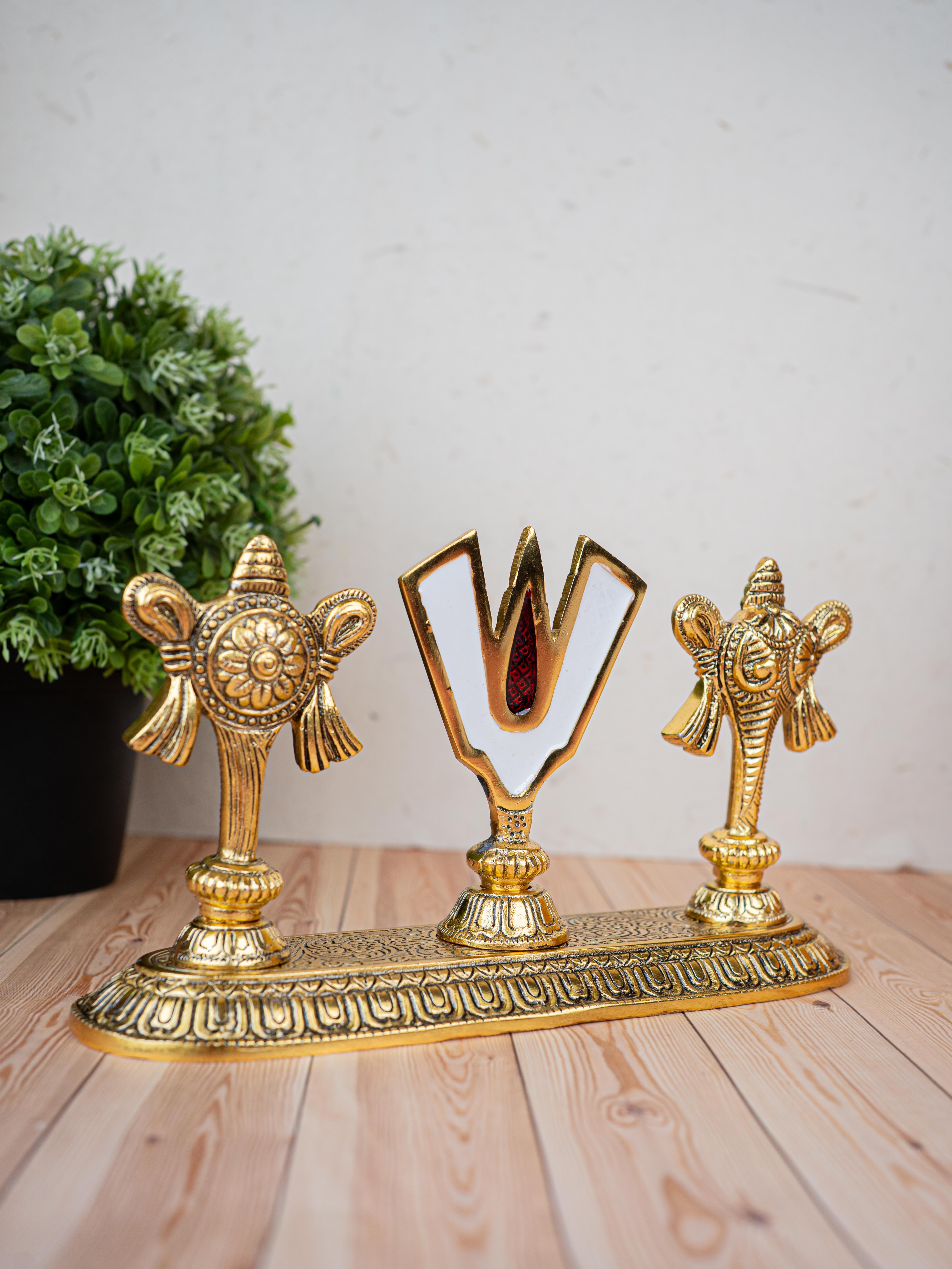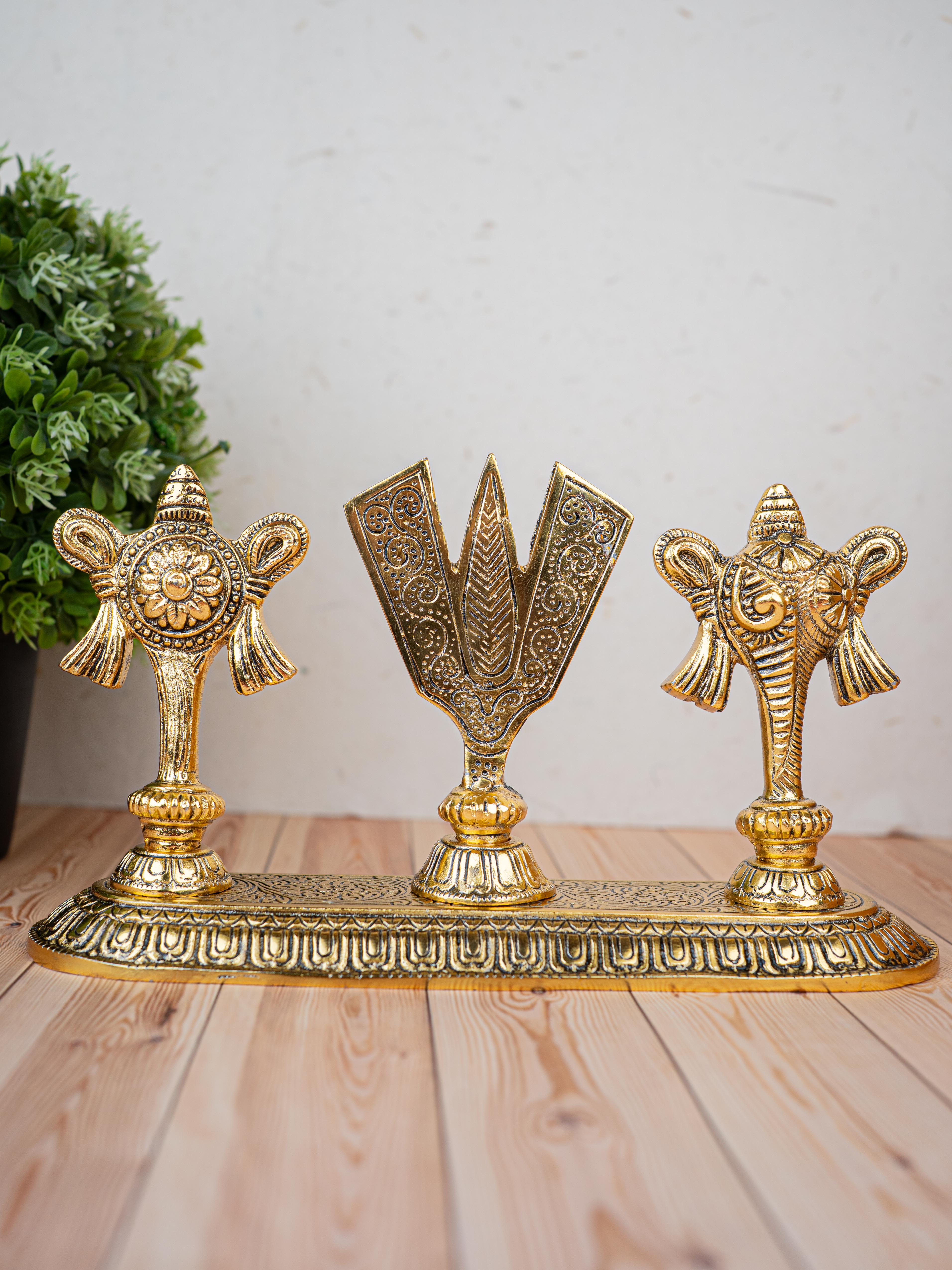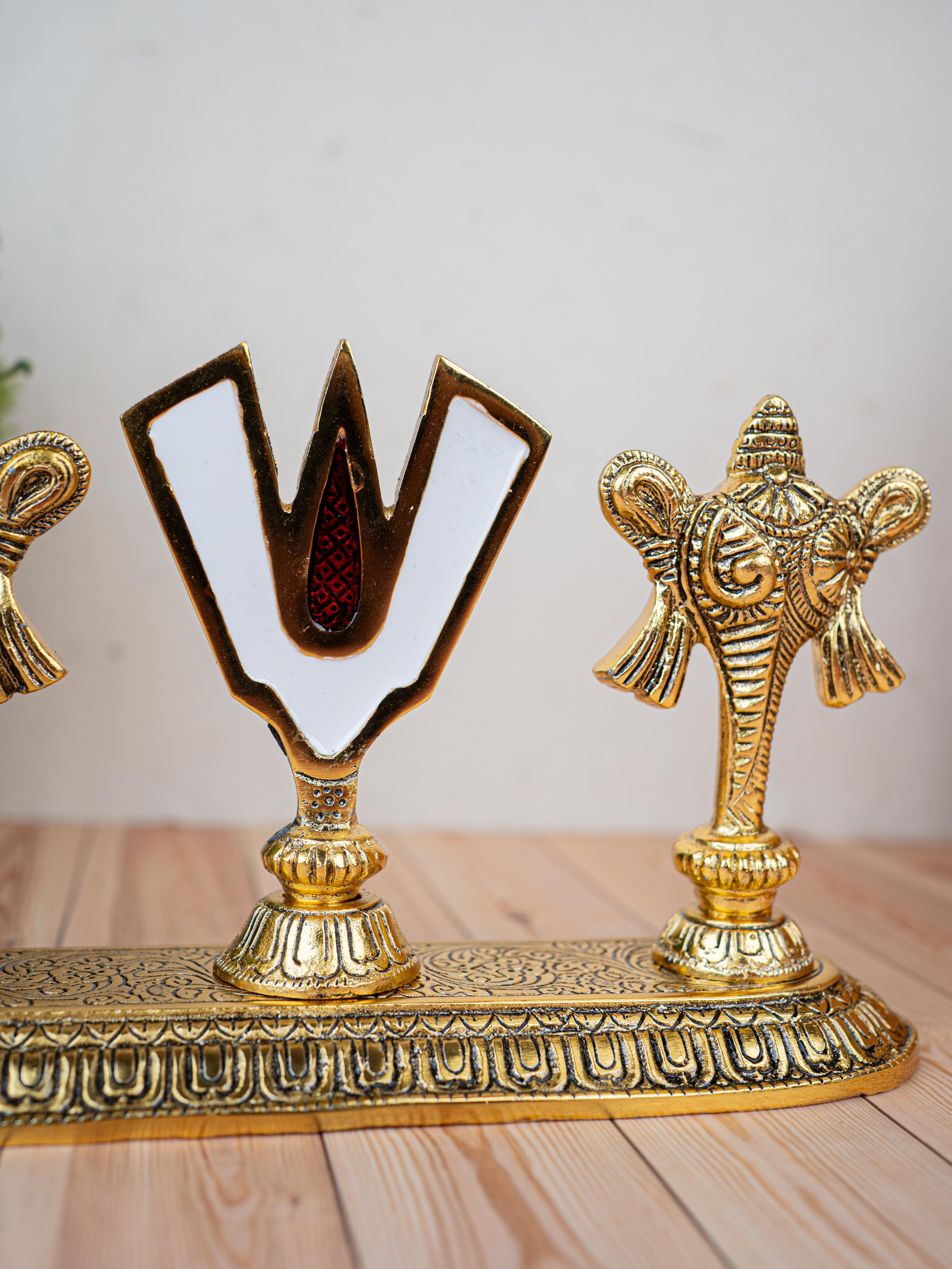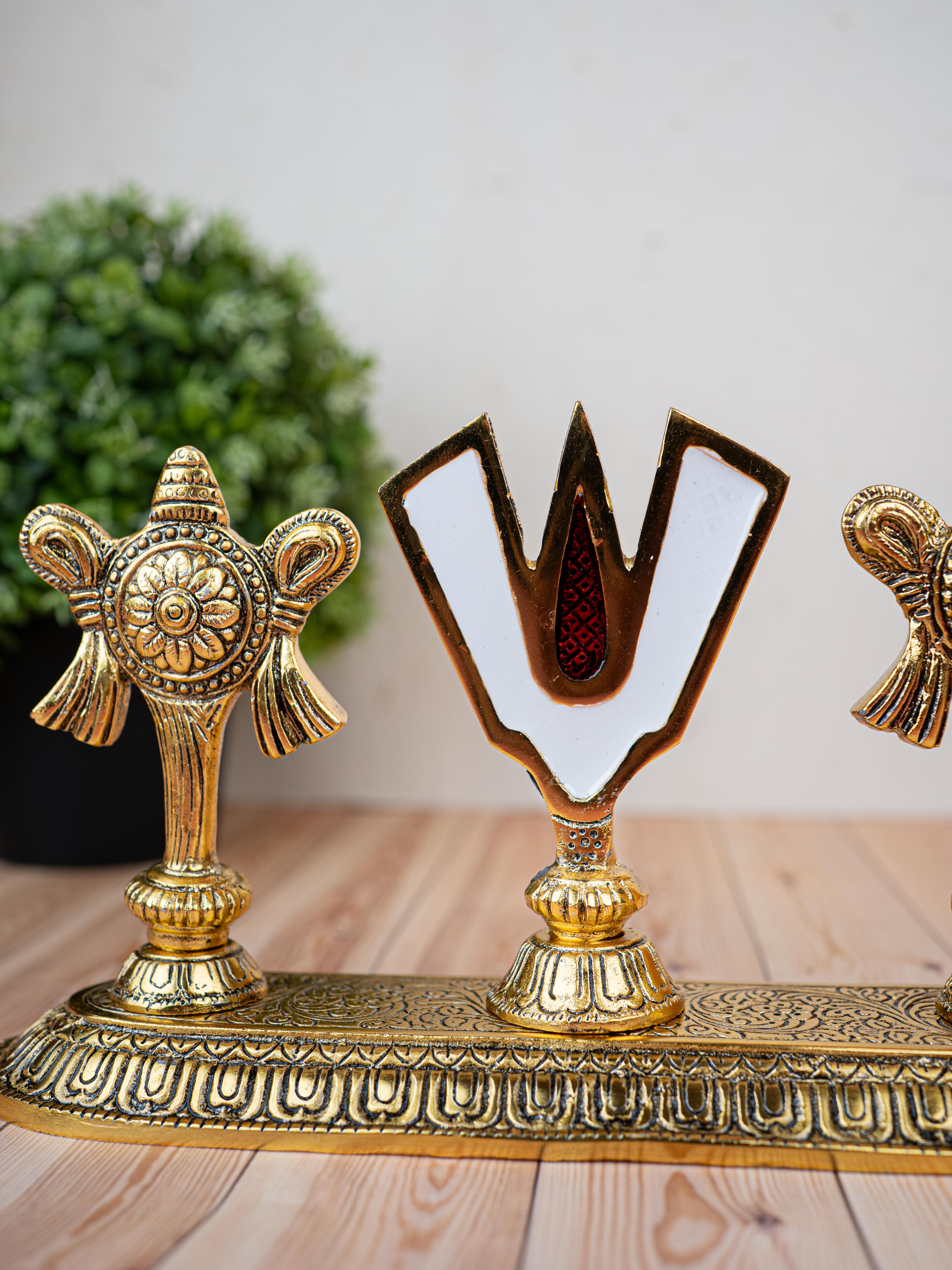 - Beautifully Crafted White Metal Vaishnav Symbol Set, Representing Sacred Emblems of Lord Vishnu Worship.
