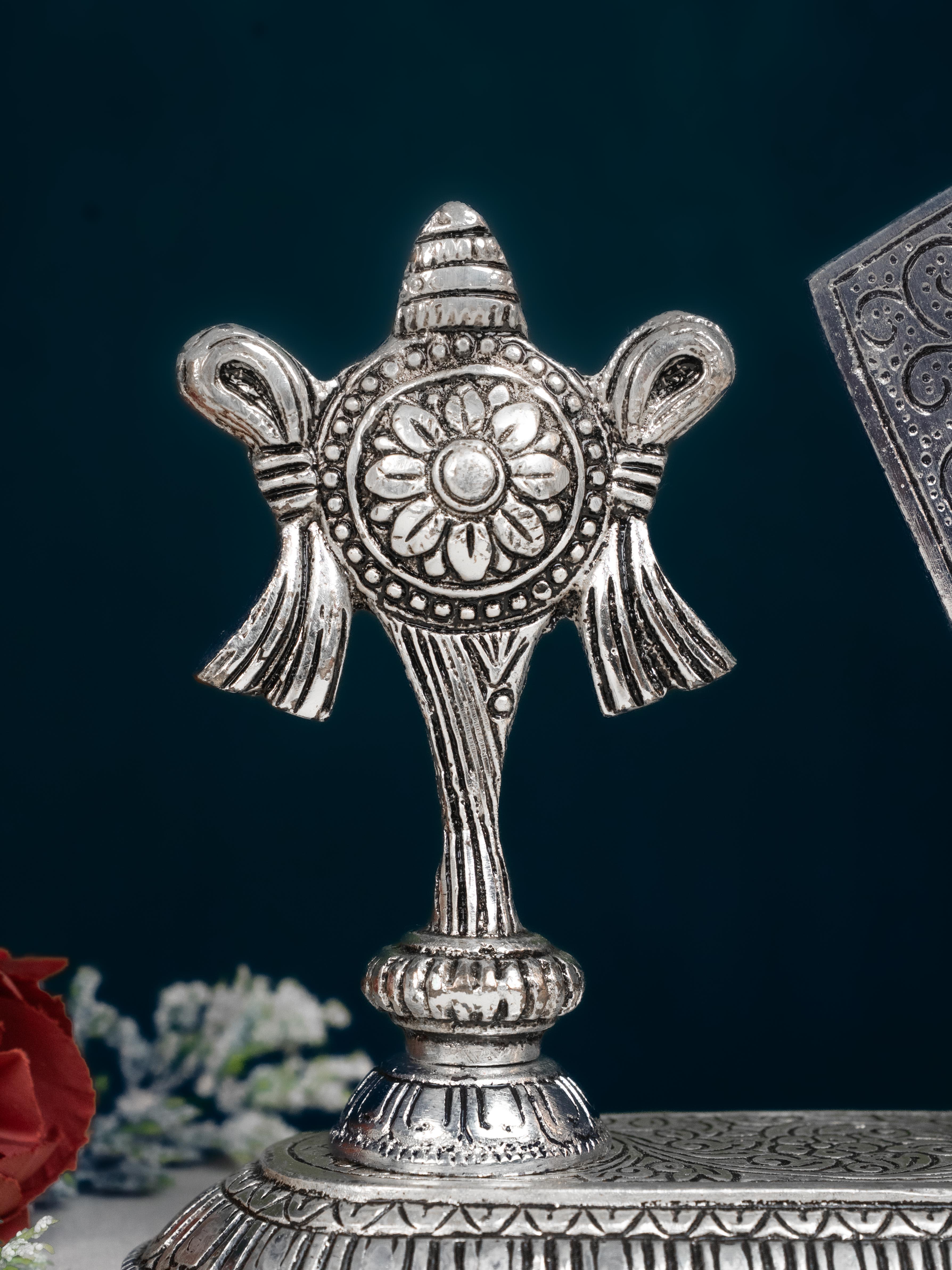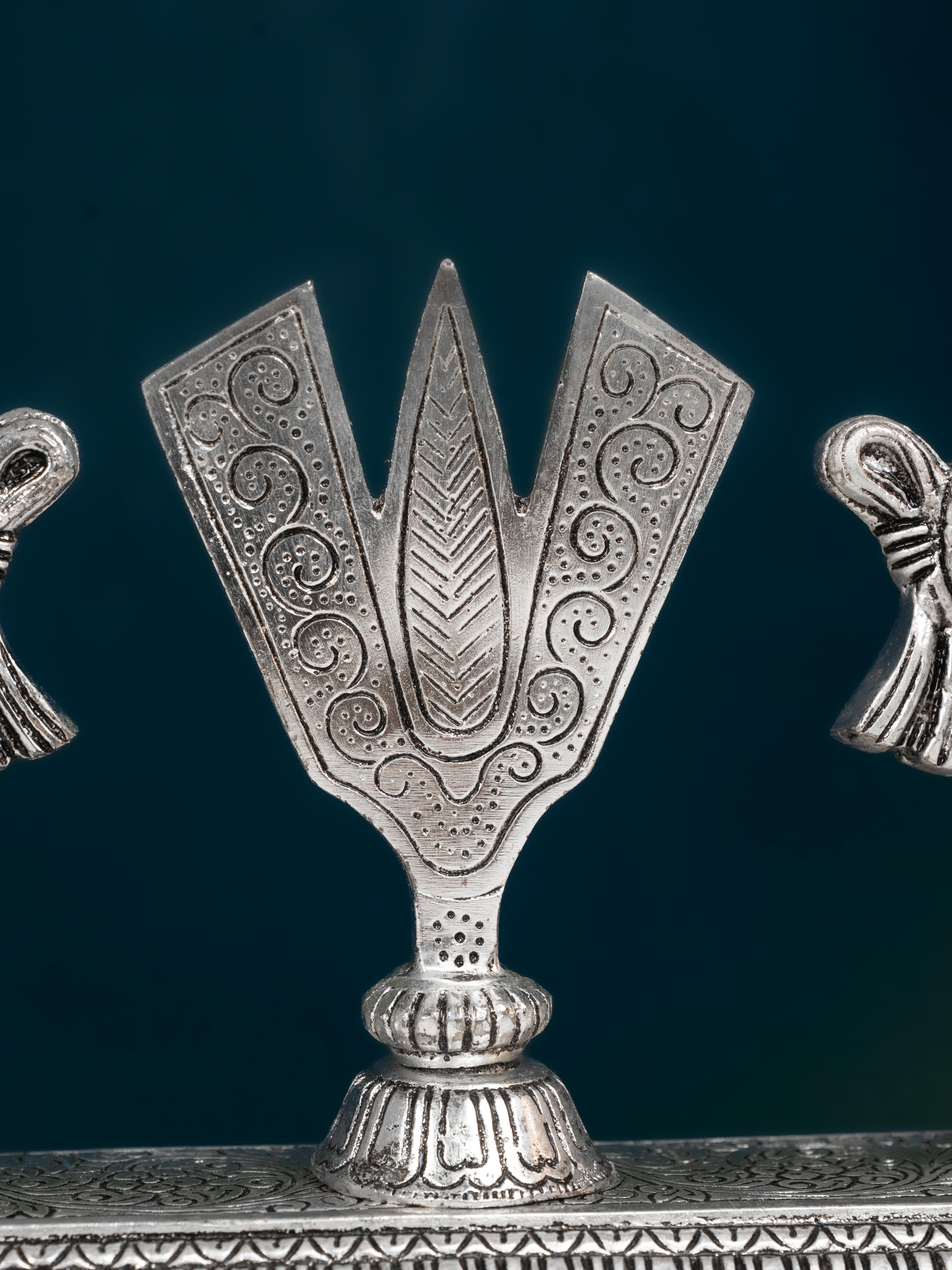 White Metal Shankh Chakra Tilak - 5 inch - Silver - WL5191-2