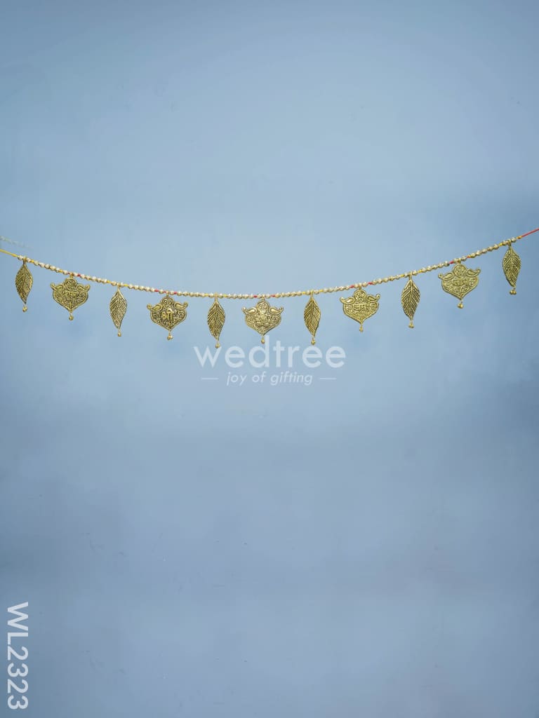 - This thoran, comes with beautiful artifacts made of white metal that comes in Gold oxidized finish.