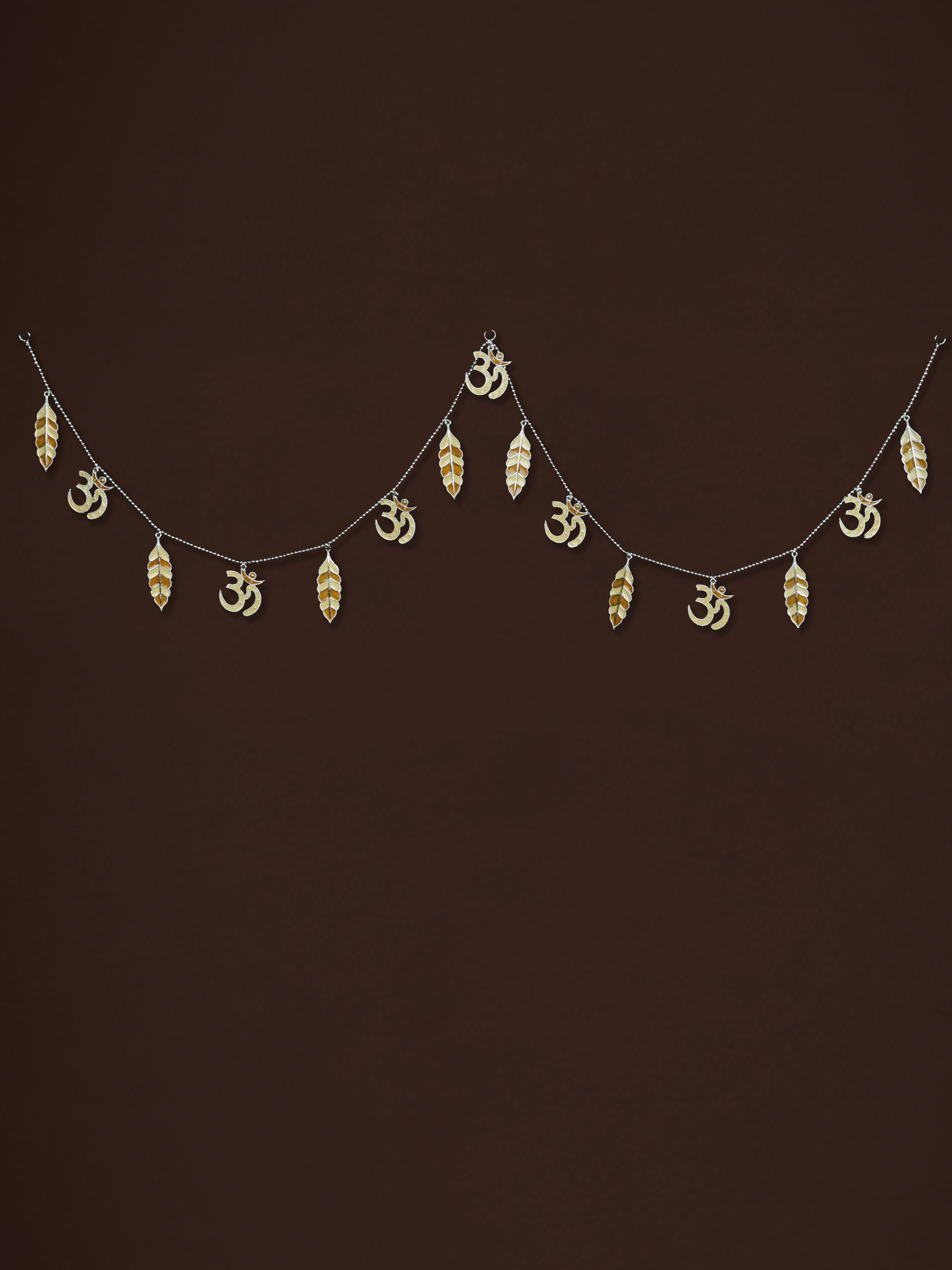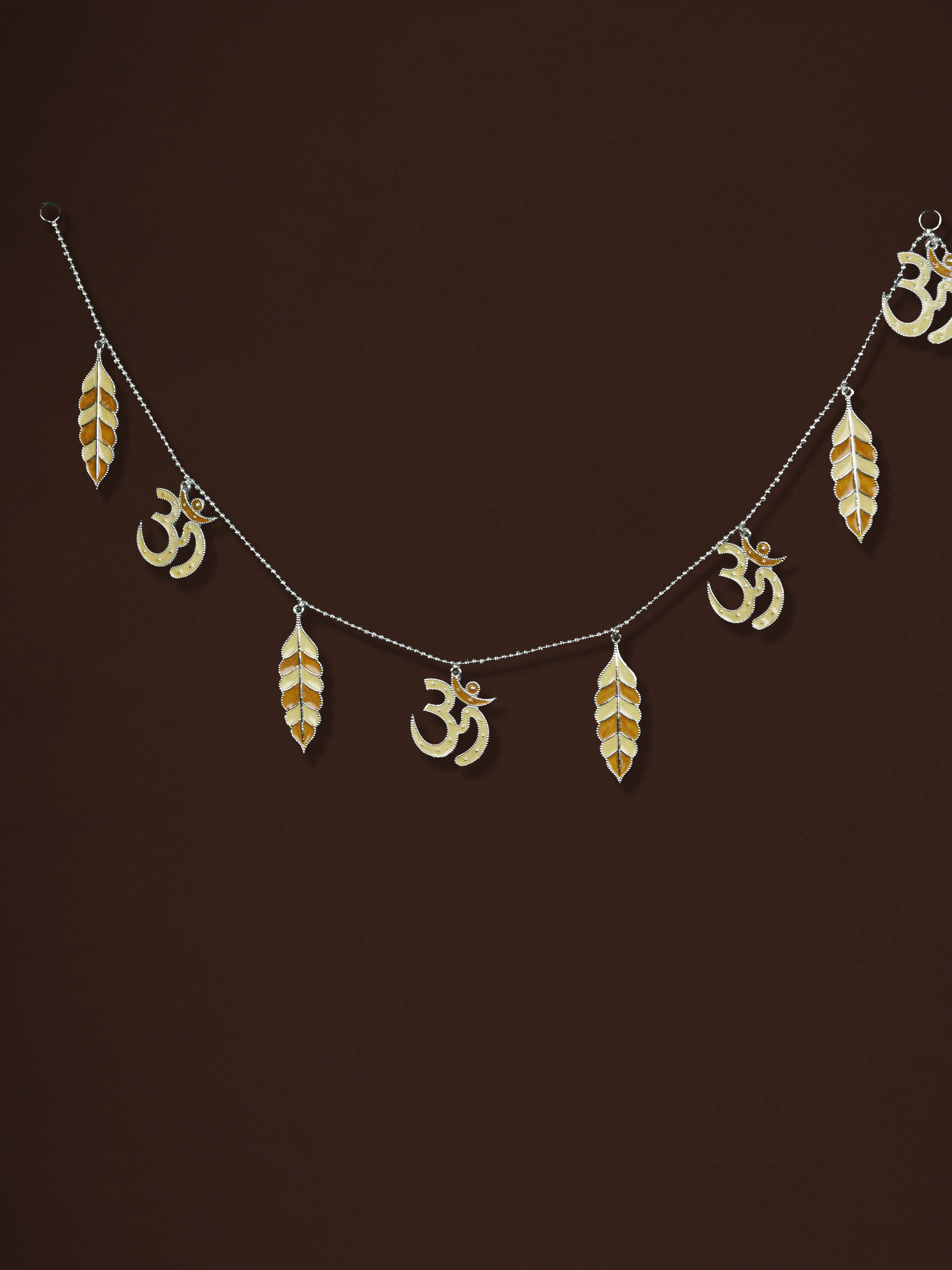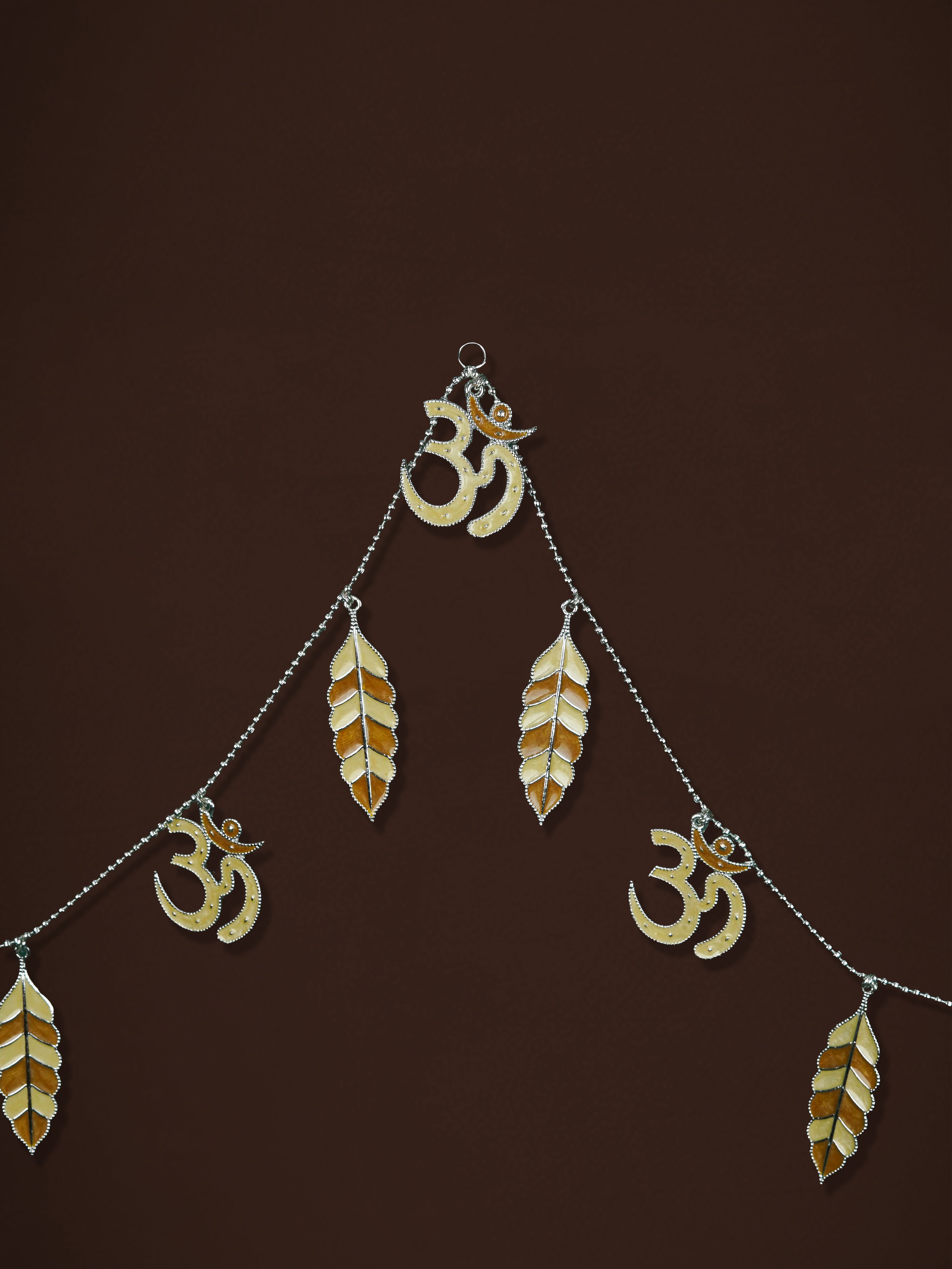 White Metal Thoran with Swastik & Leaf - Beige - WL5584-2
