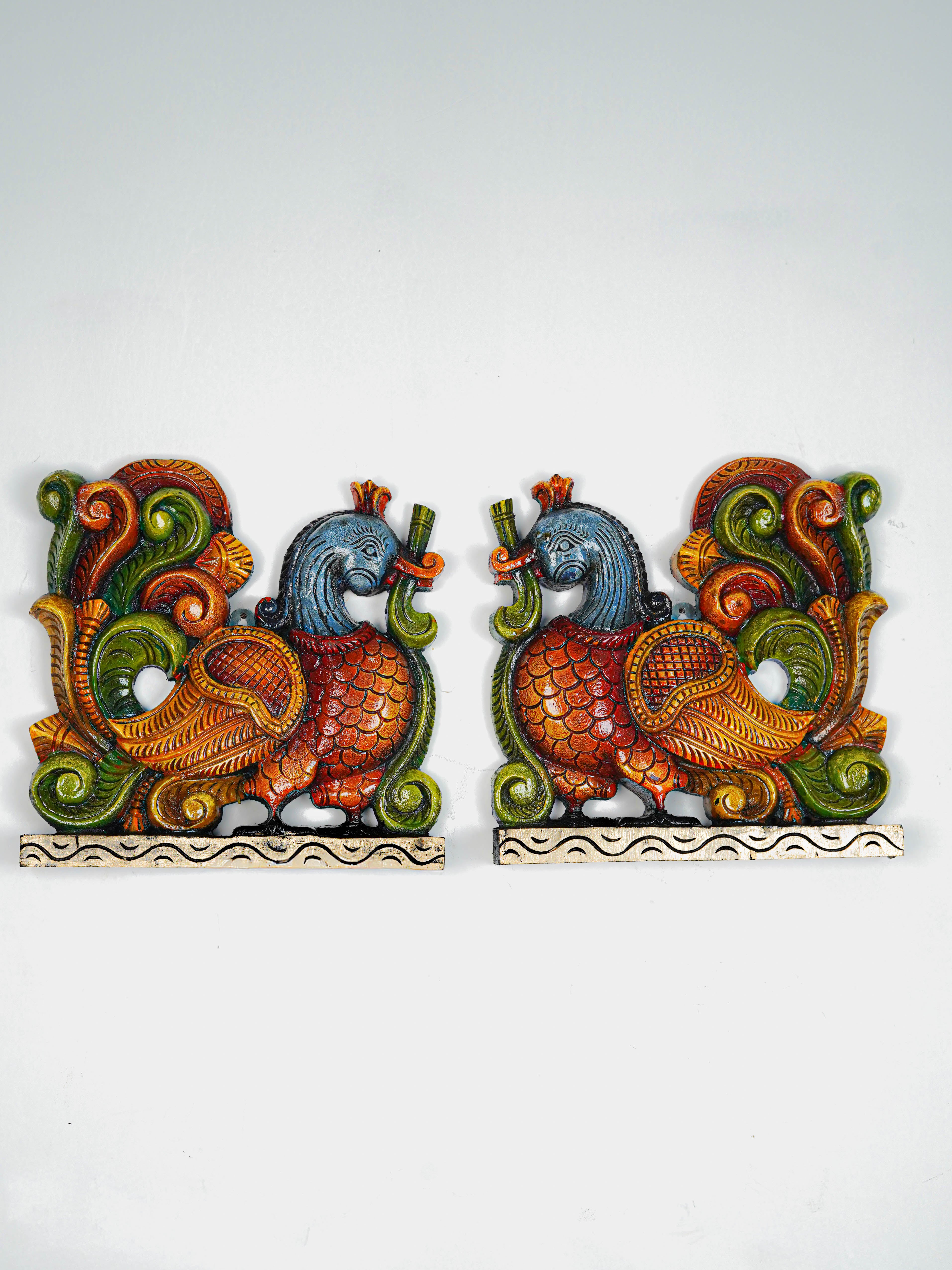 Wooden Carved Annapakshi Bracket - Set of 2 - 11 inch - WL5642