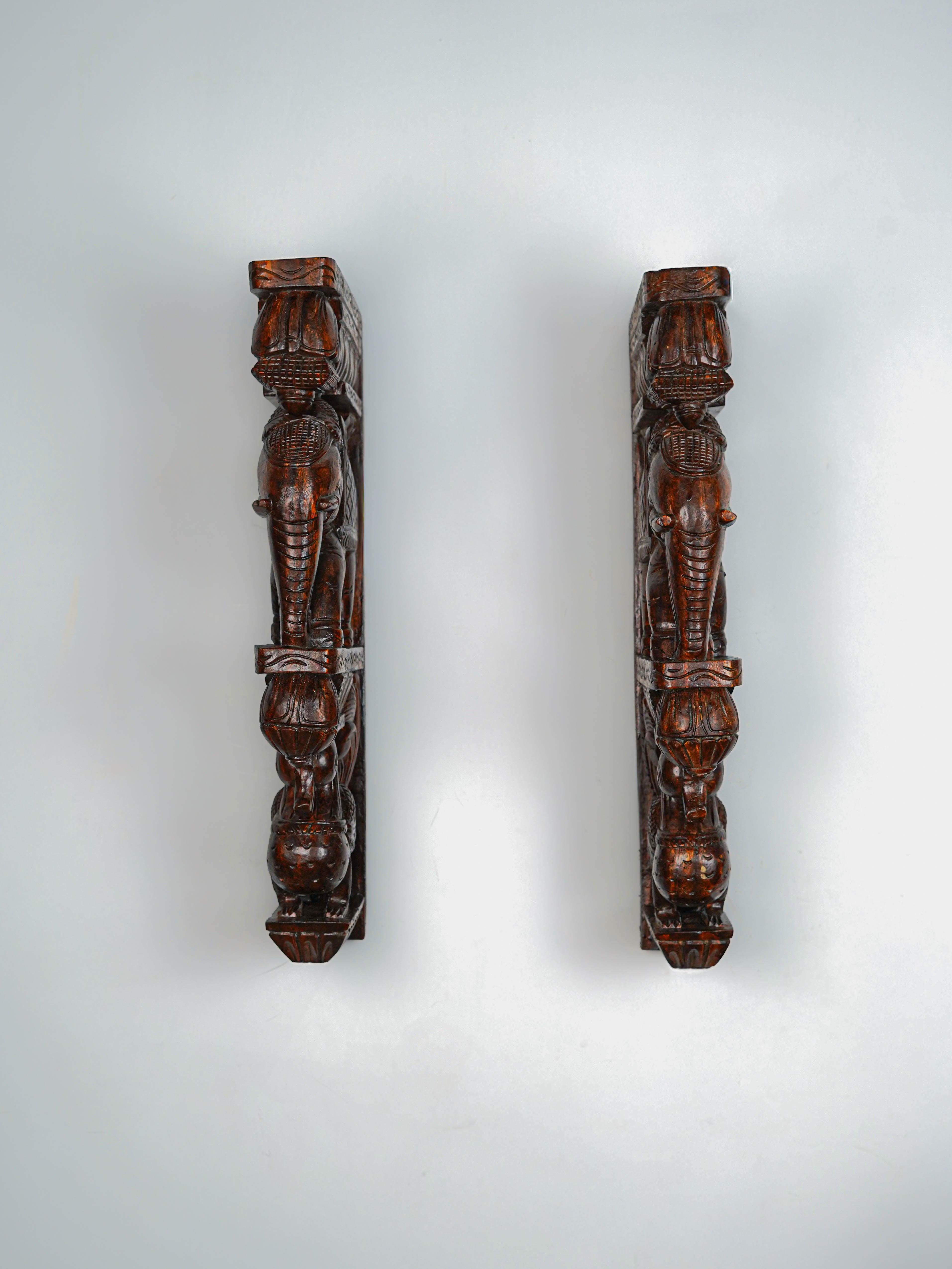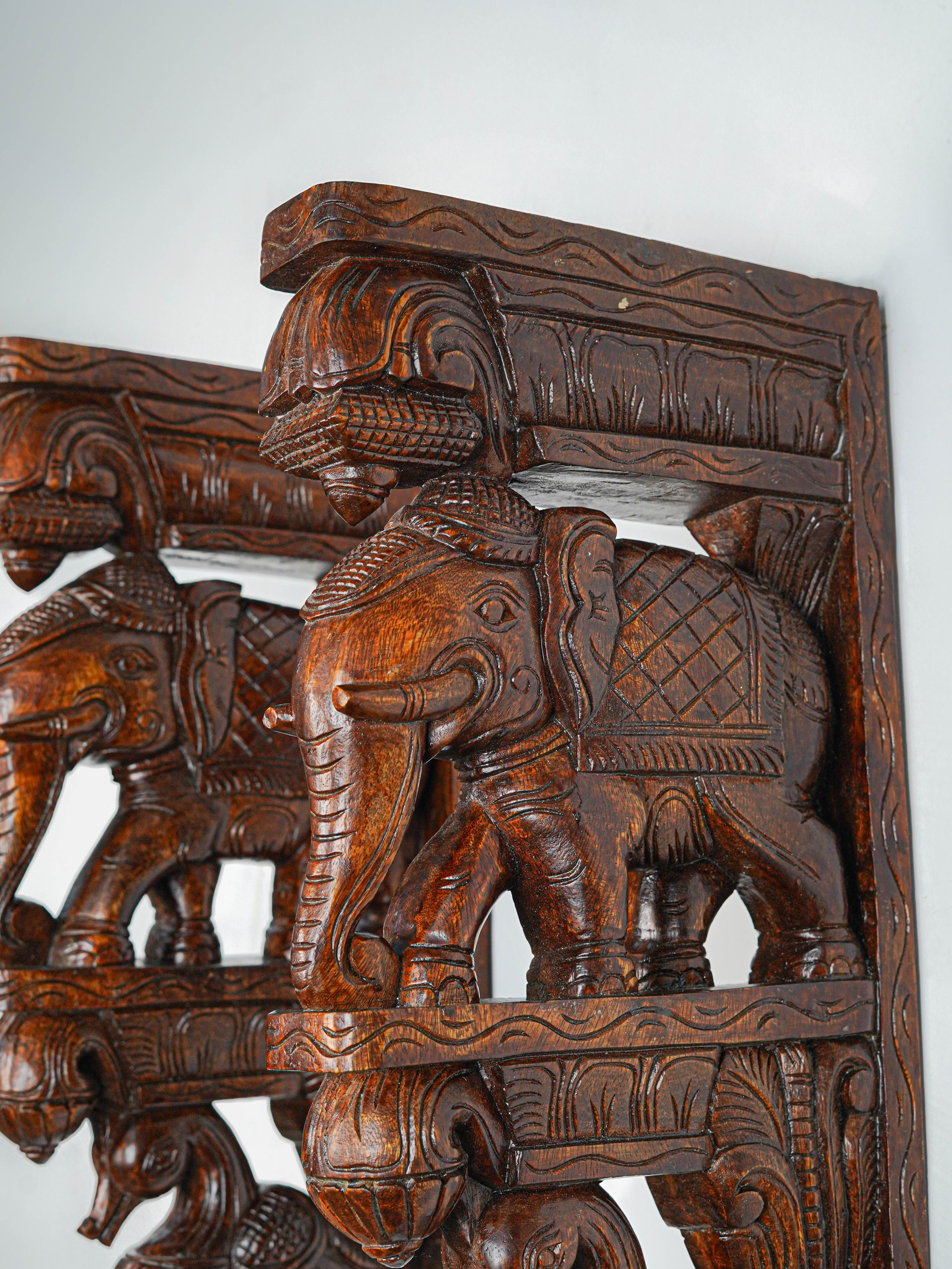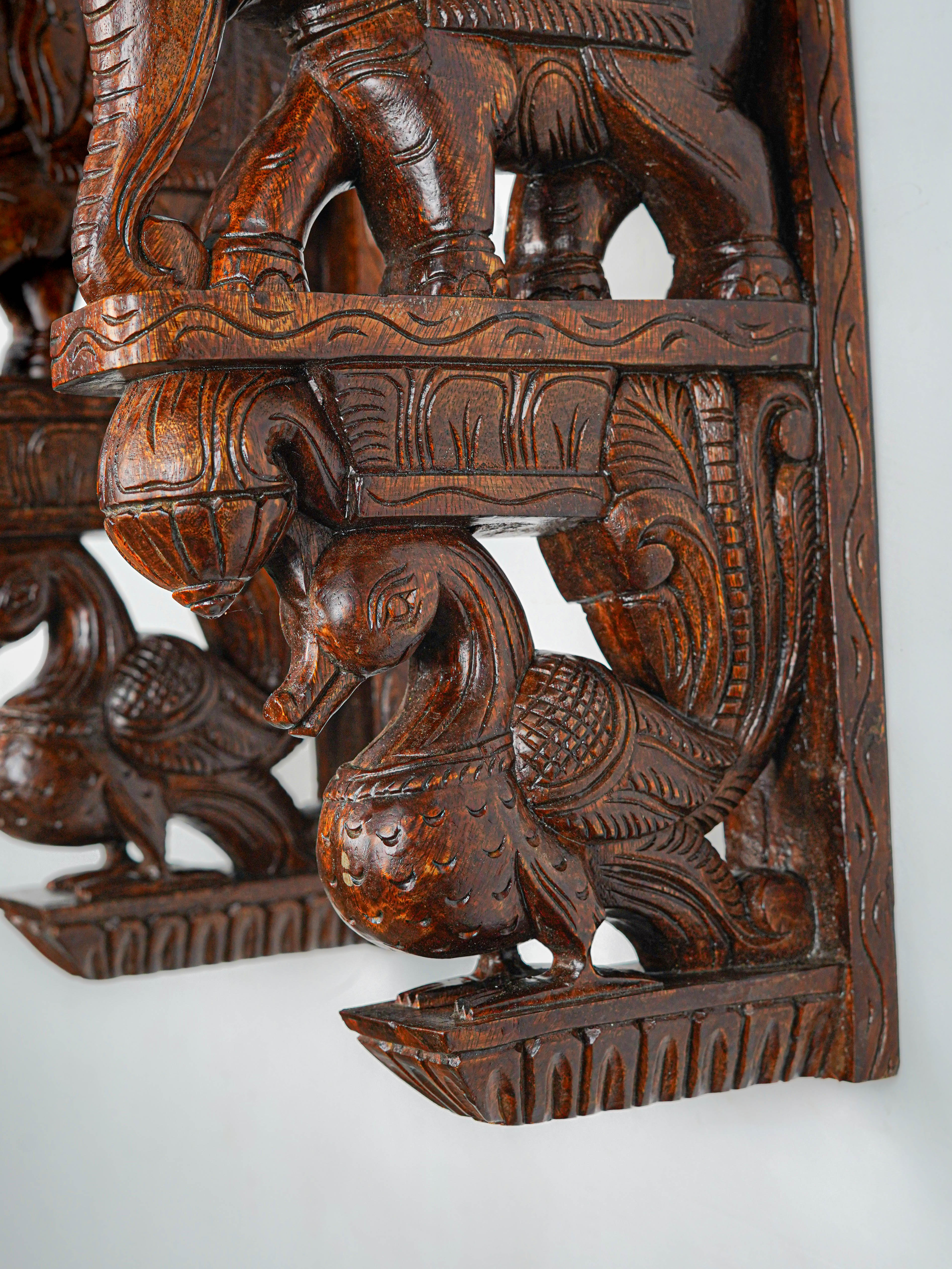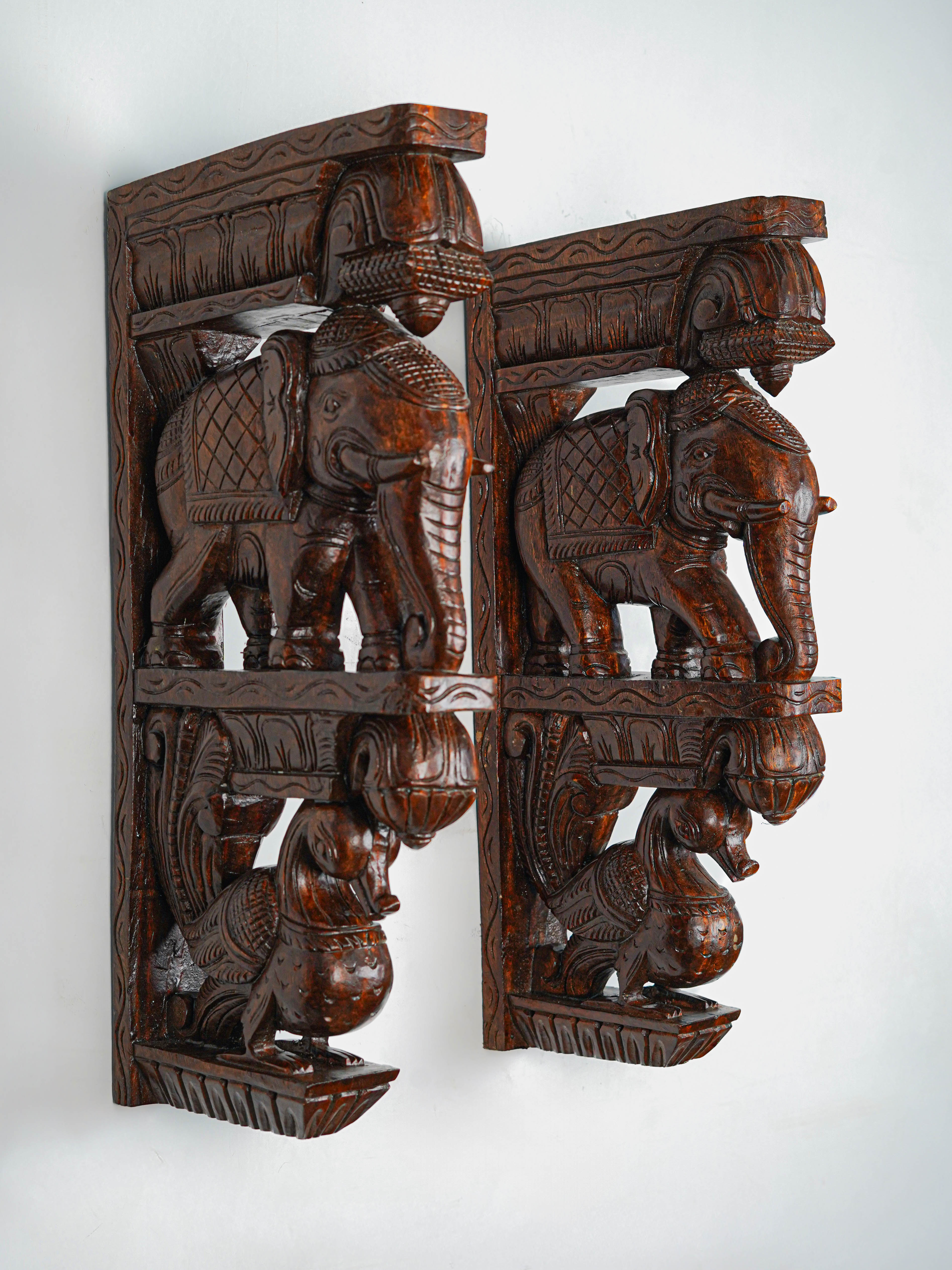 - Bracket Showcases Two Majestic Elephants with Annapakshi on Each Side, Carved in a Classic Royal Style with intricate detailing on the Headgear and Body.