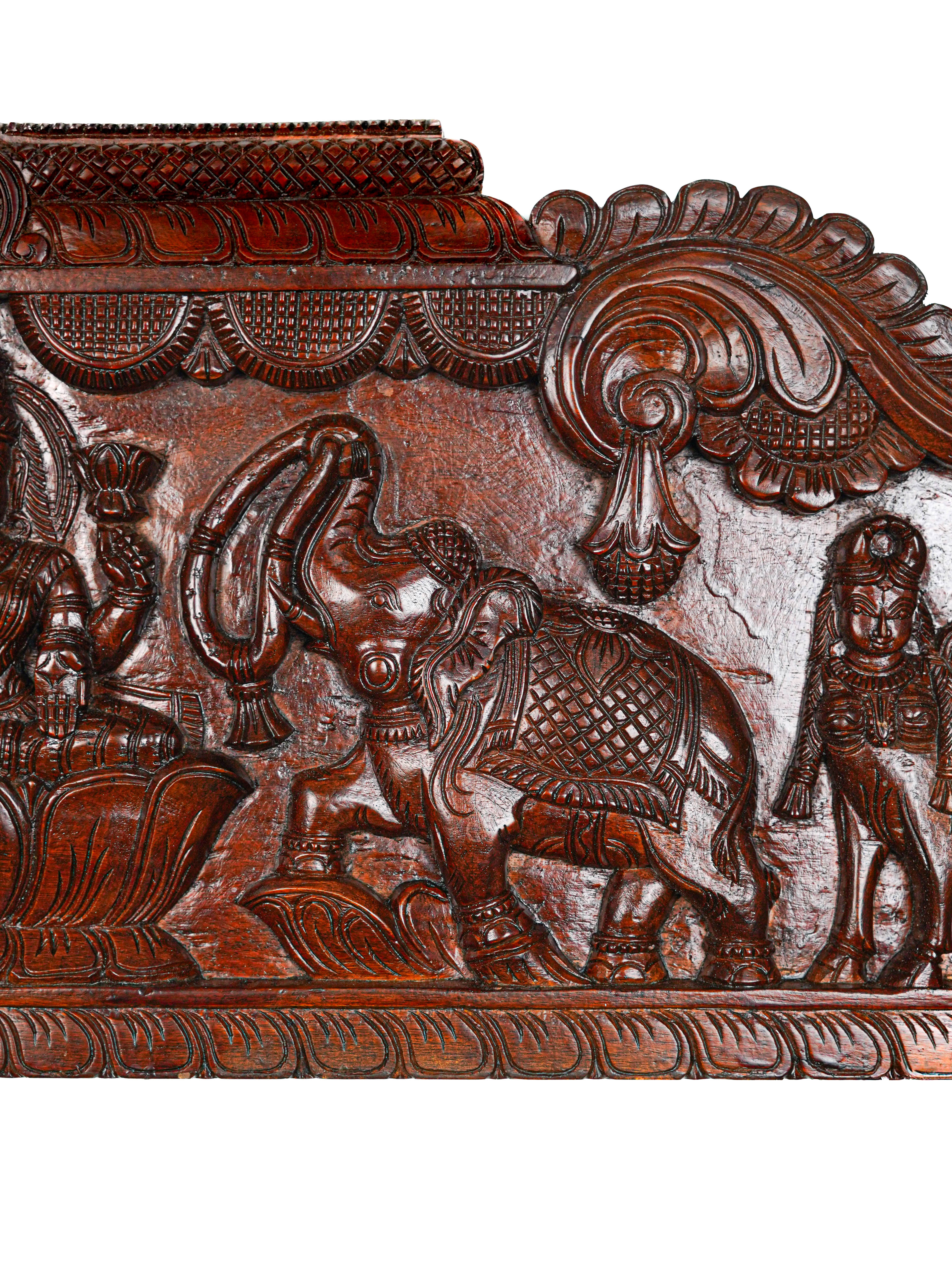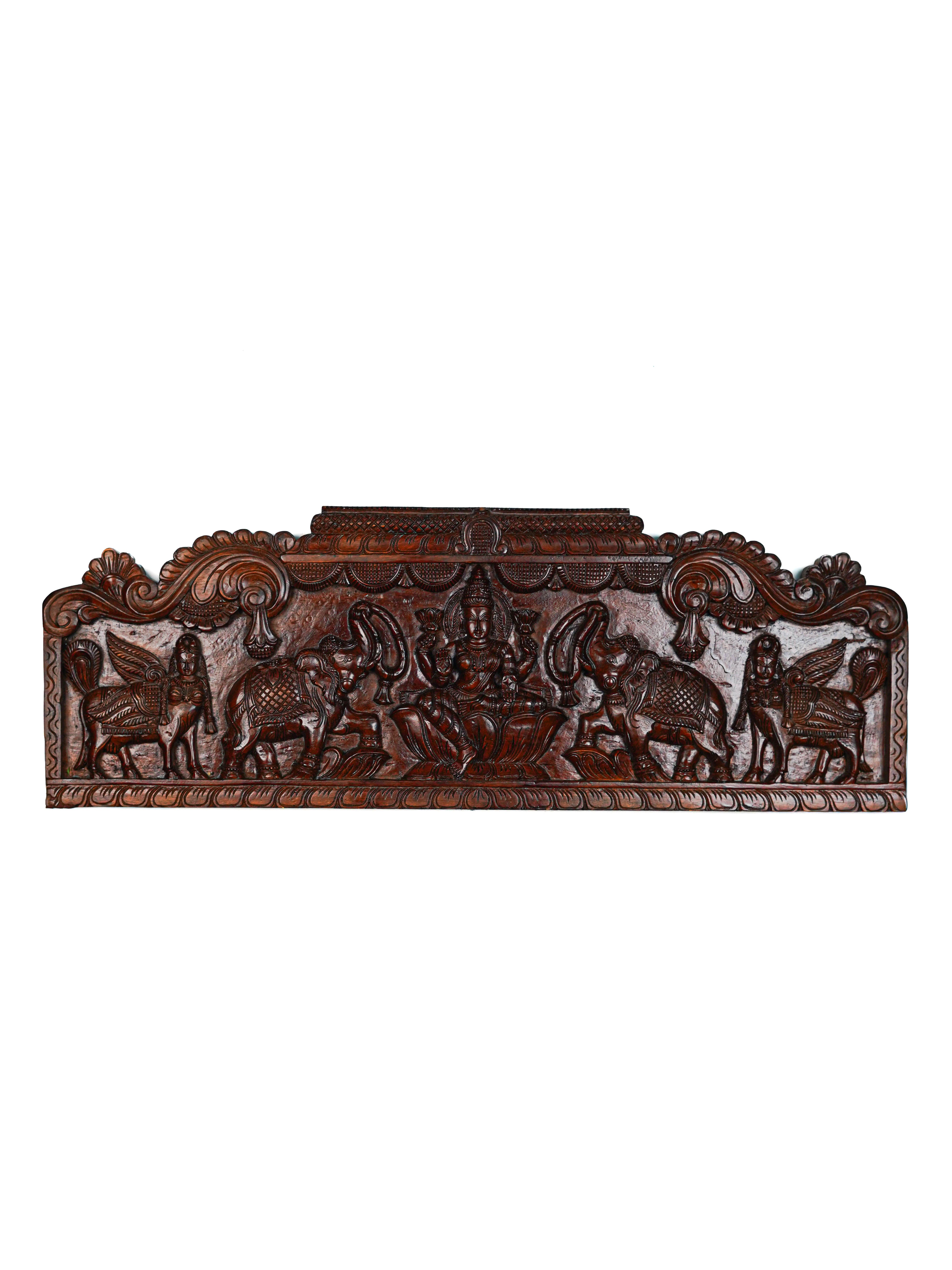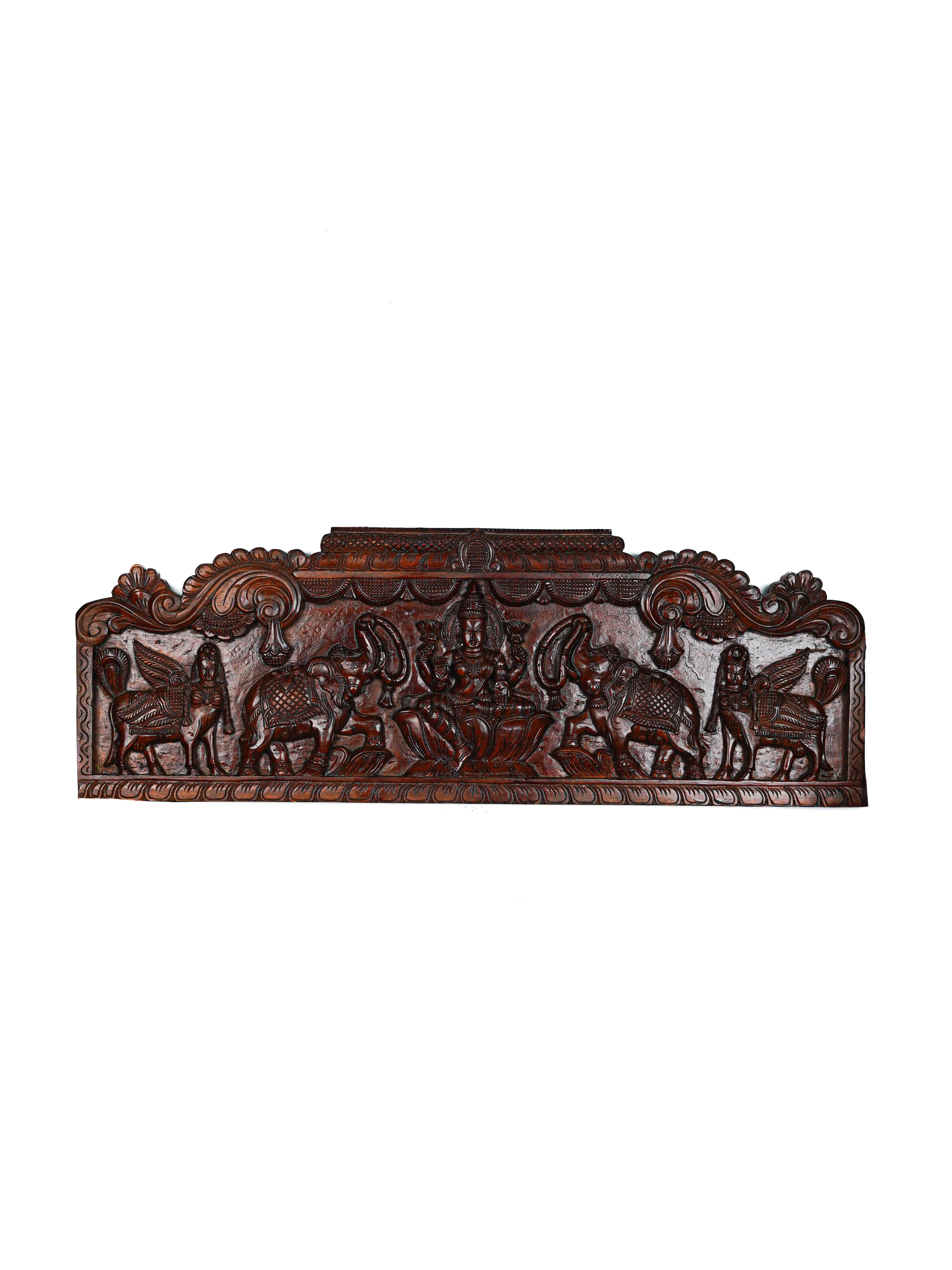 Wooden Carved Gajalakshmi Wall Hanging Panel - Brown - 42 inch - WL5636