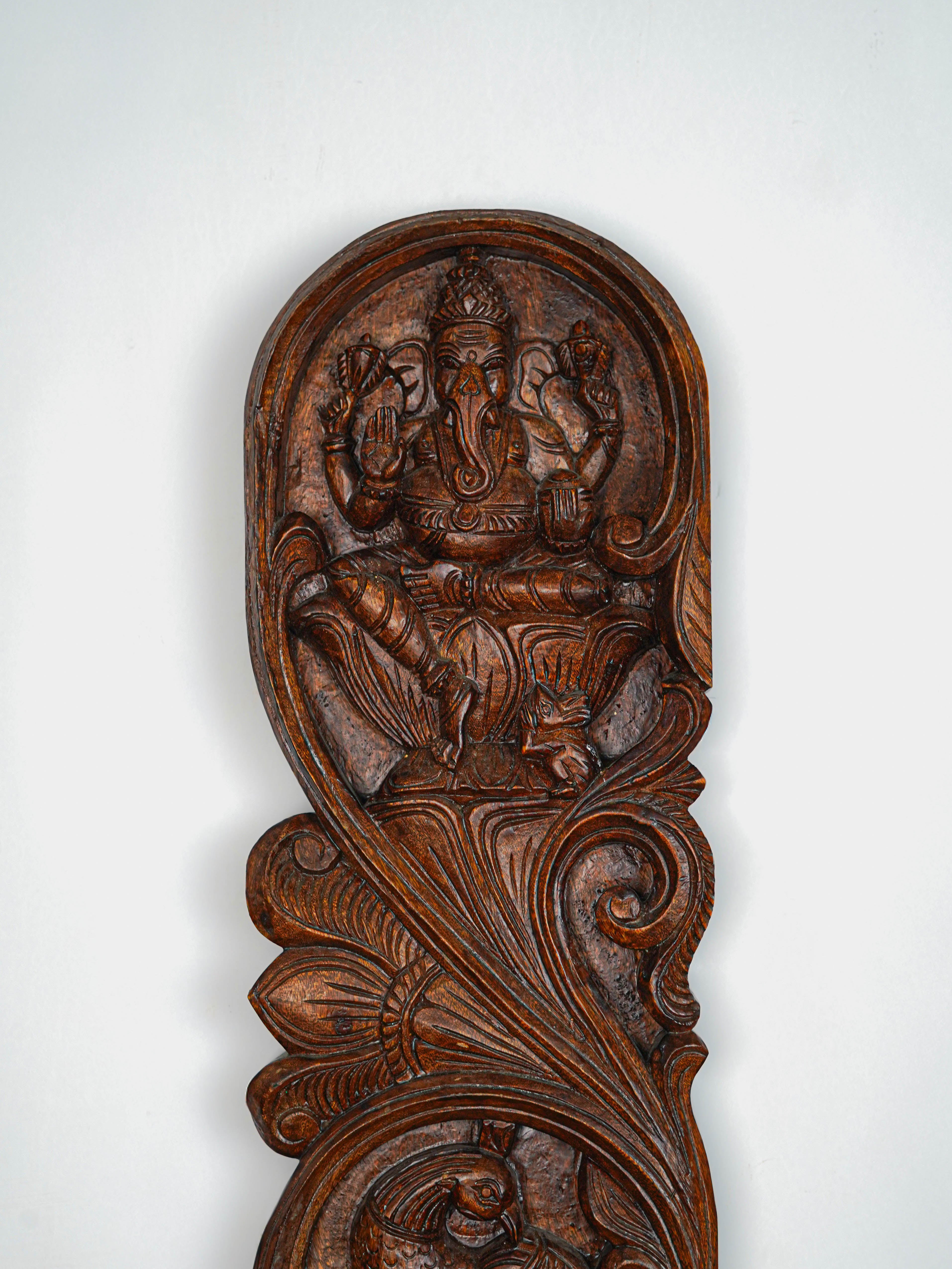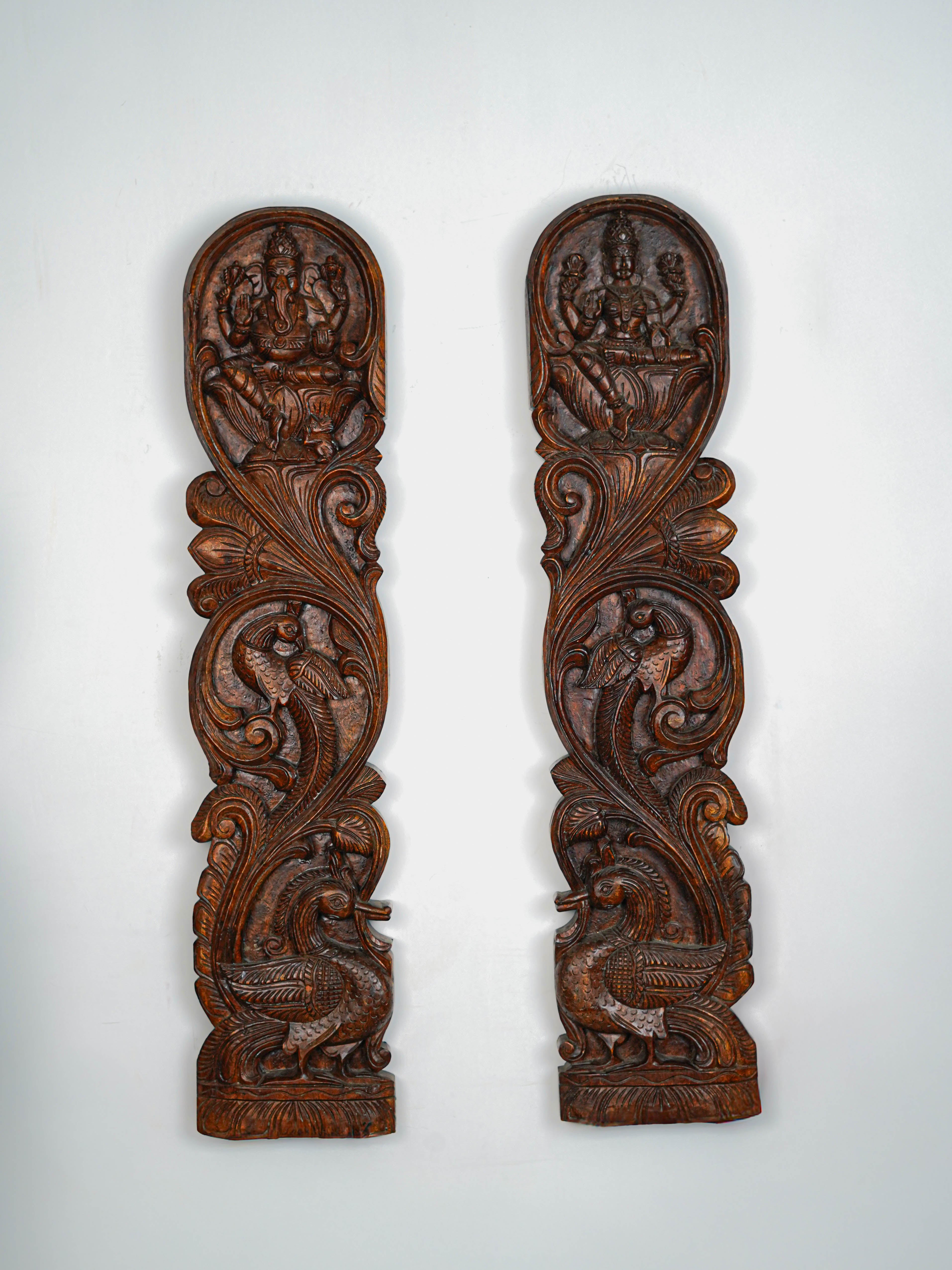 - This Striking Pair of Traditional Wooden Panels featuring Ganesha & Lakshmi with Annapakshi at Bottom.