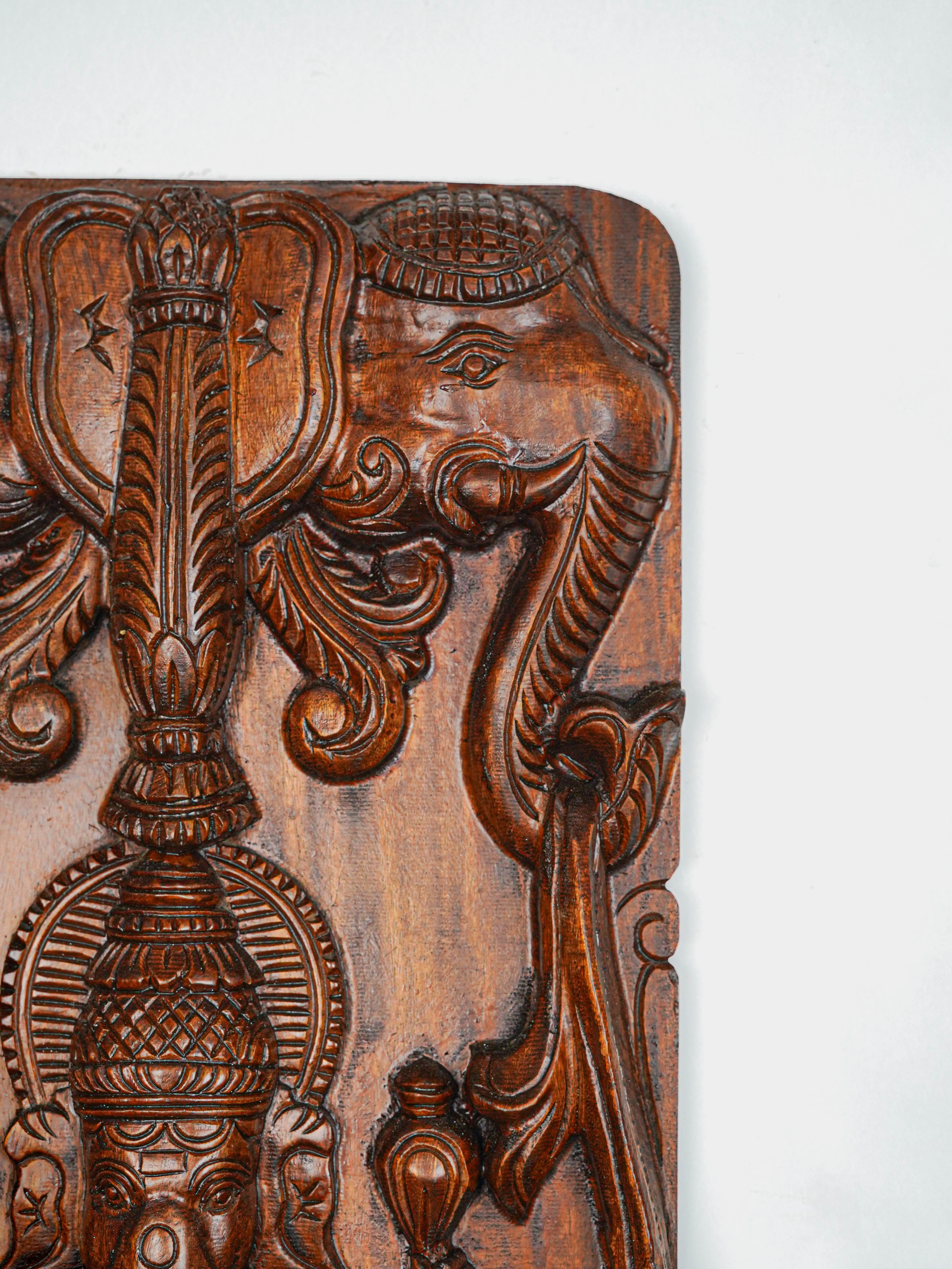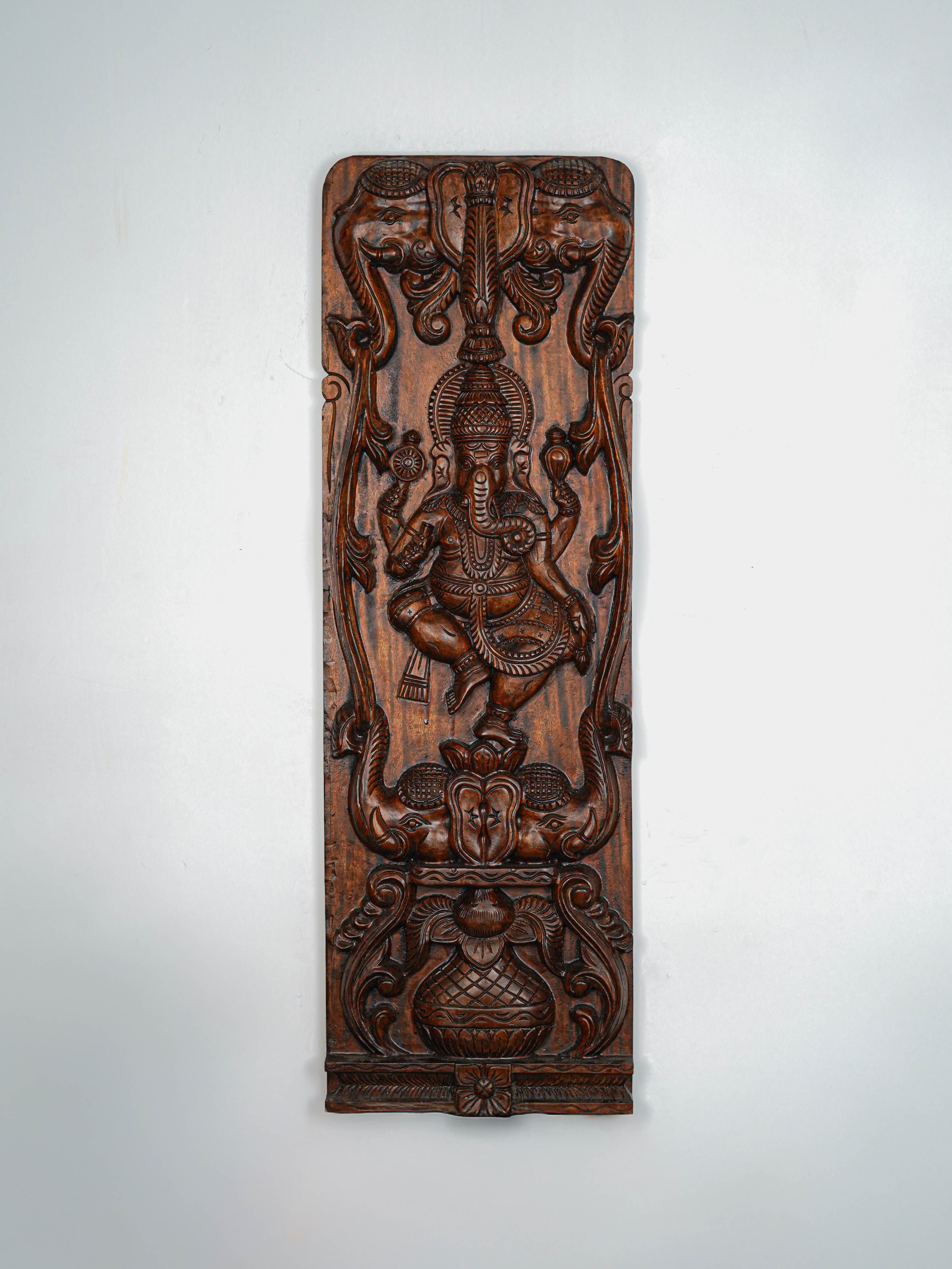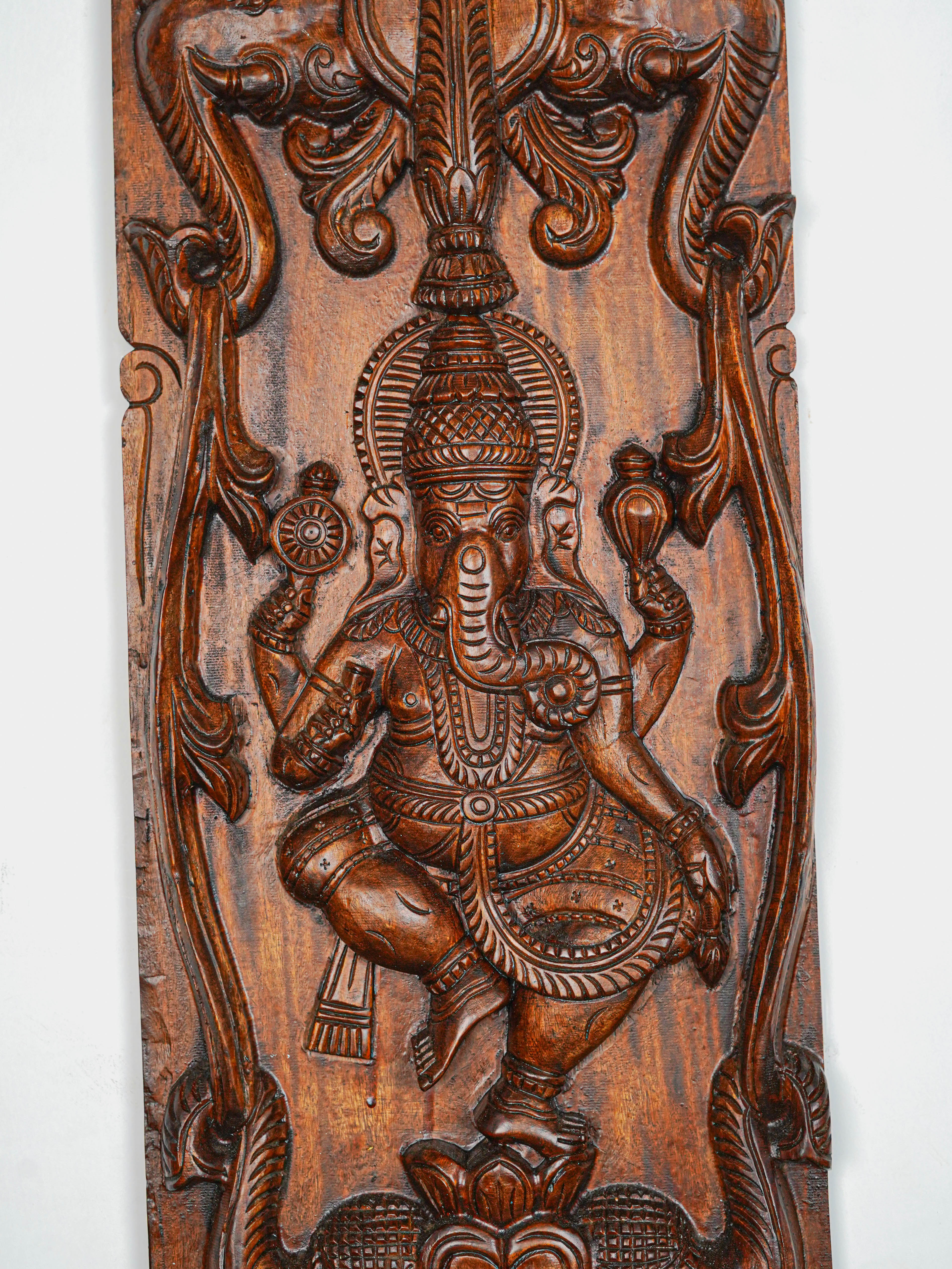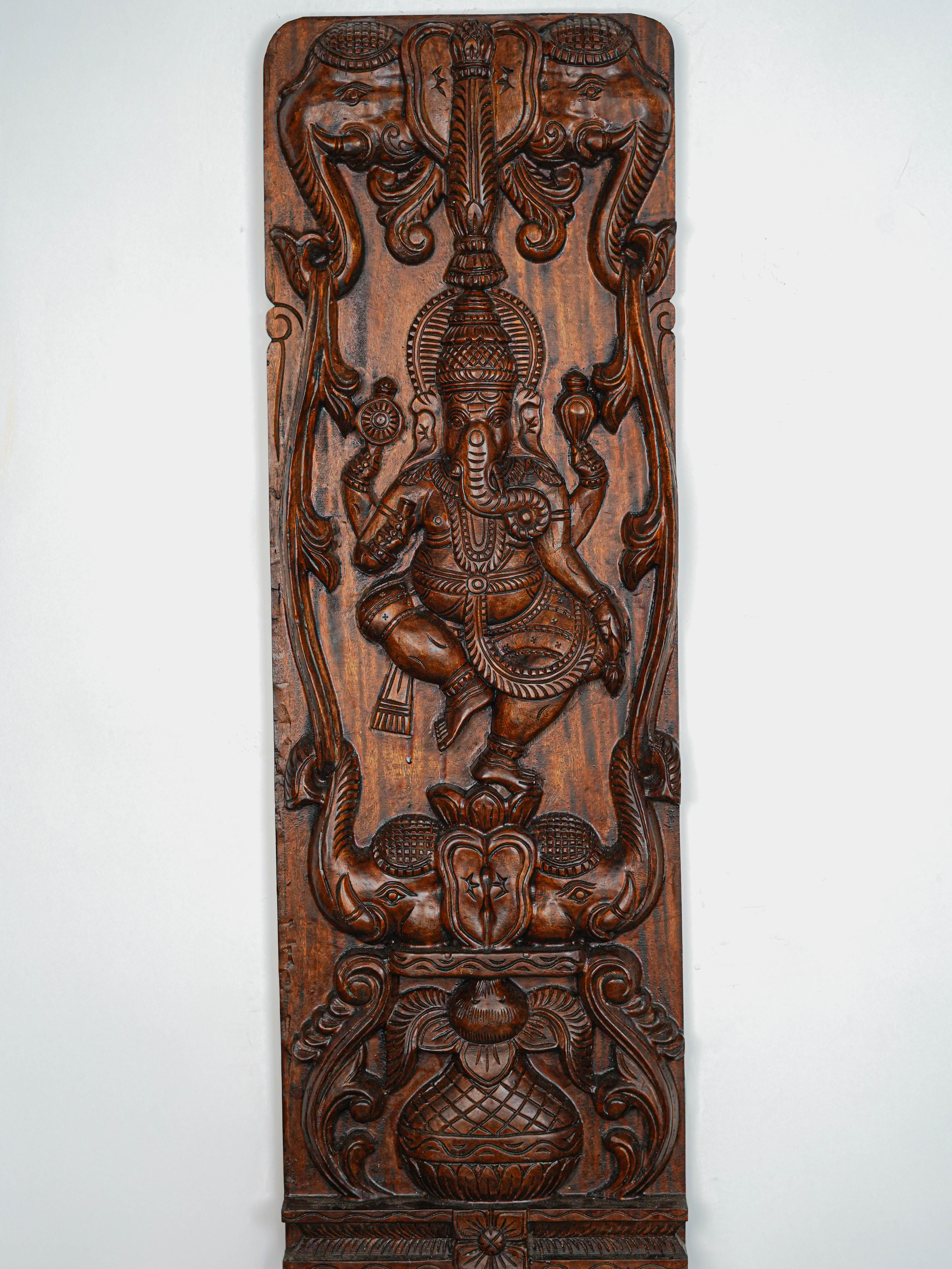 - This Striking Pair of Traditional Wooden Panels featuring Ganesha with Elephant.