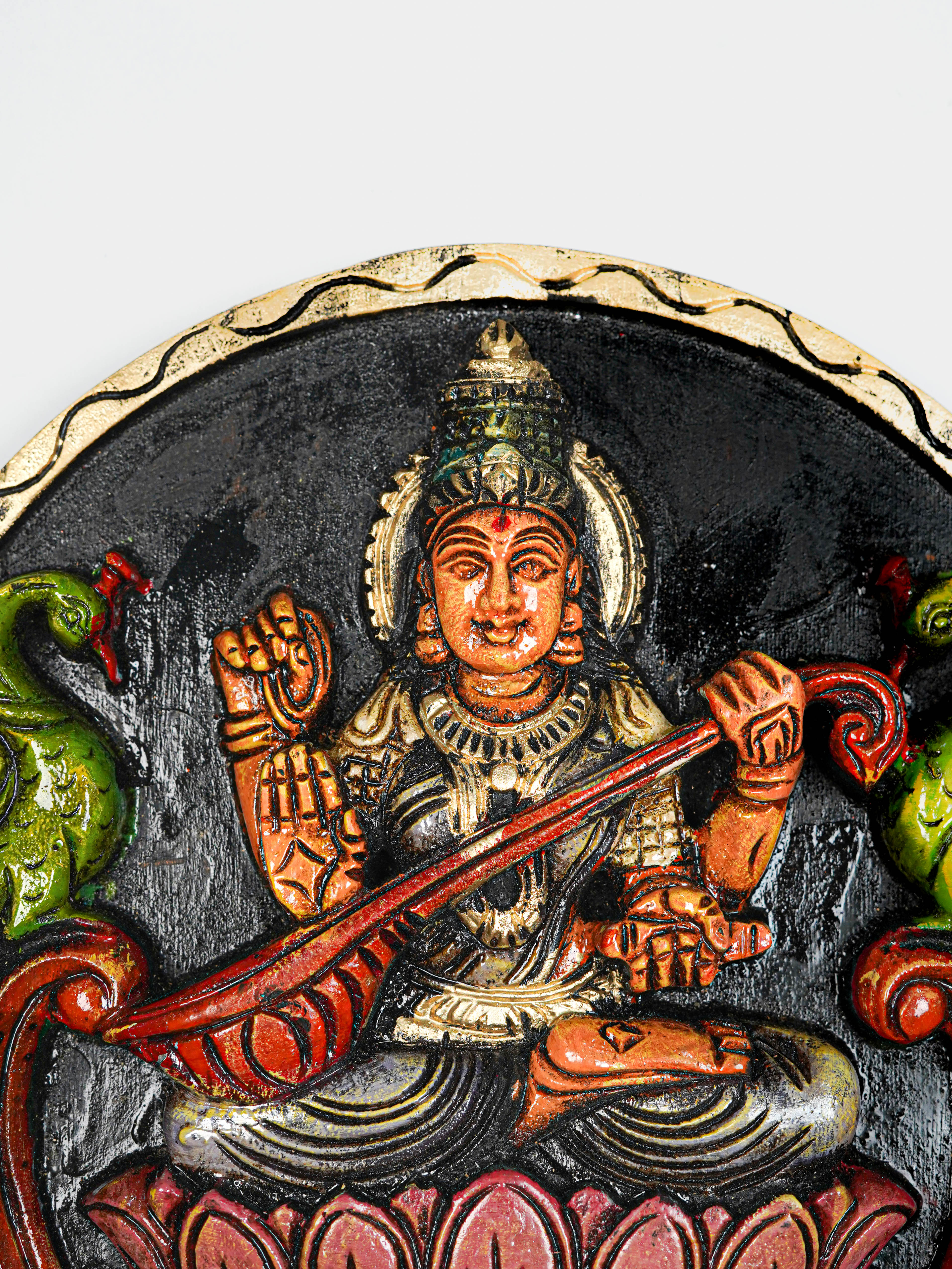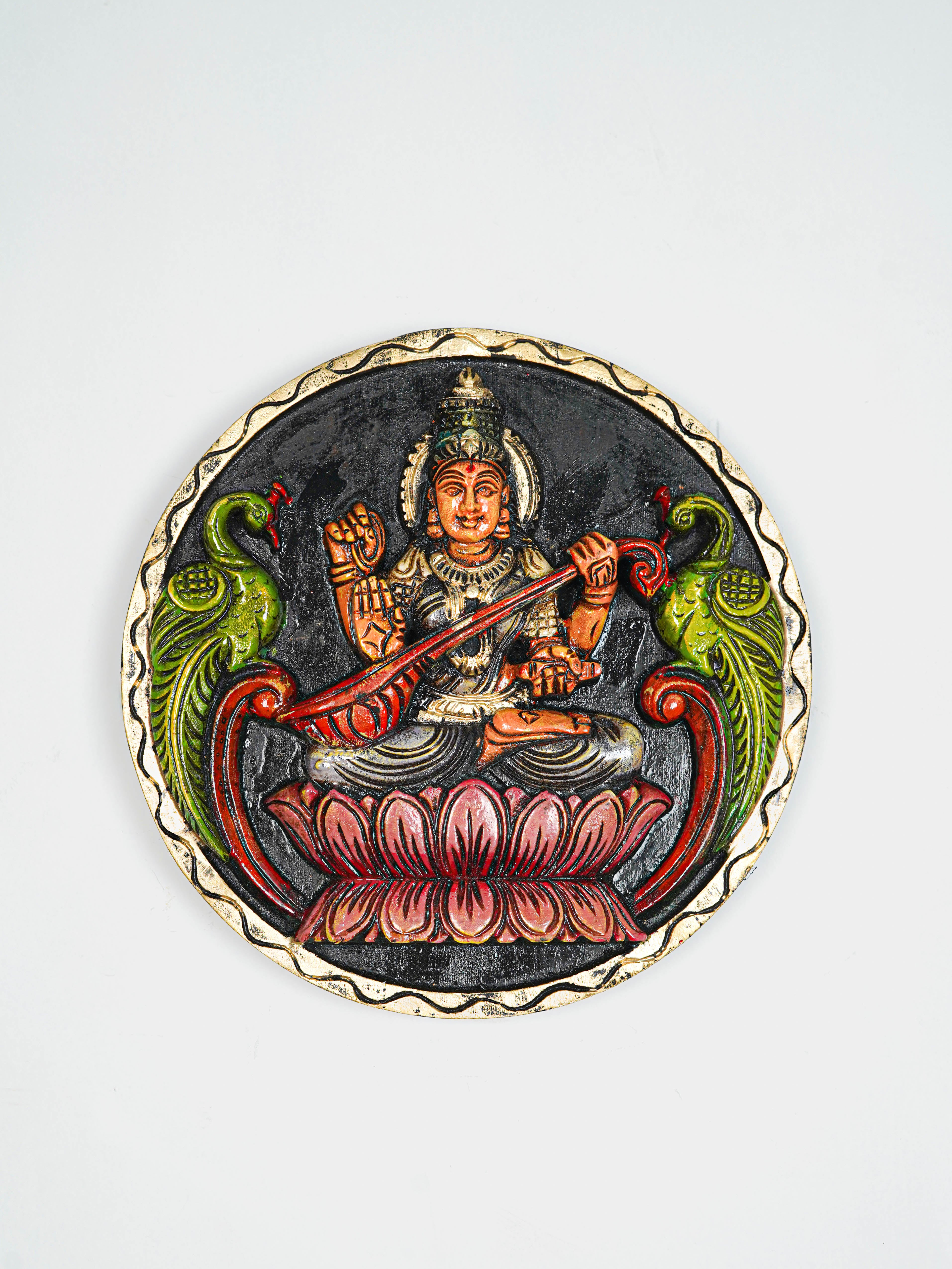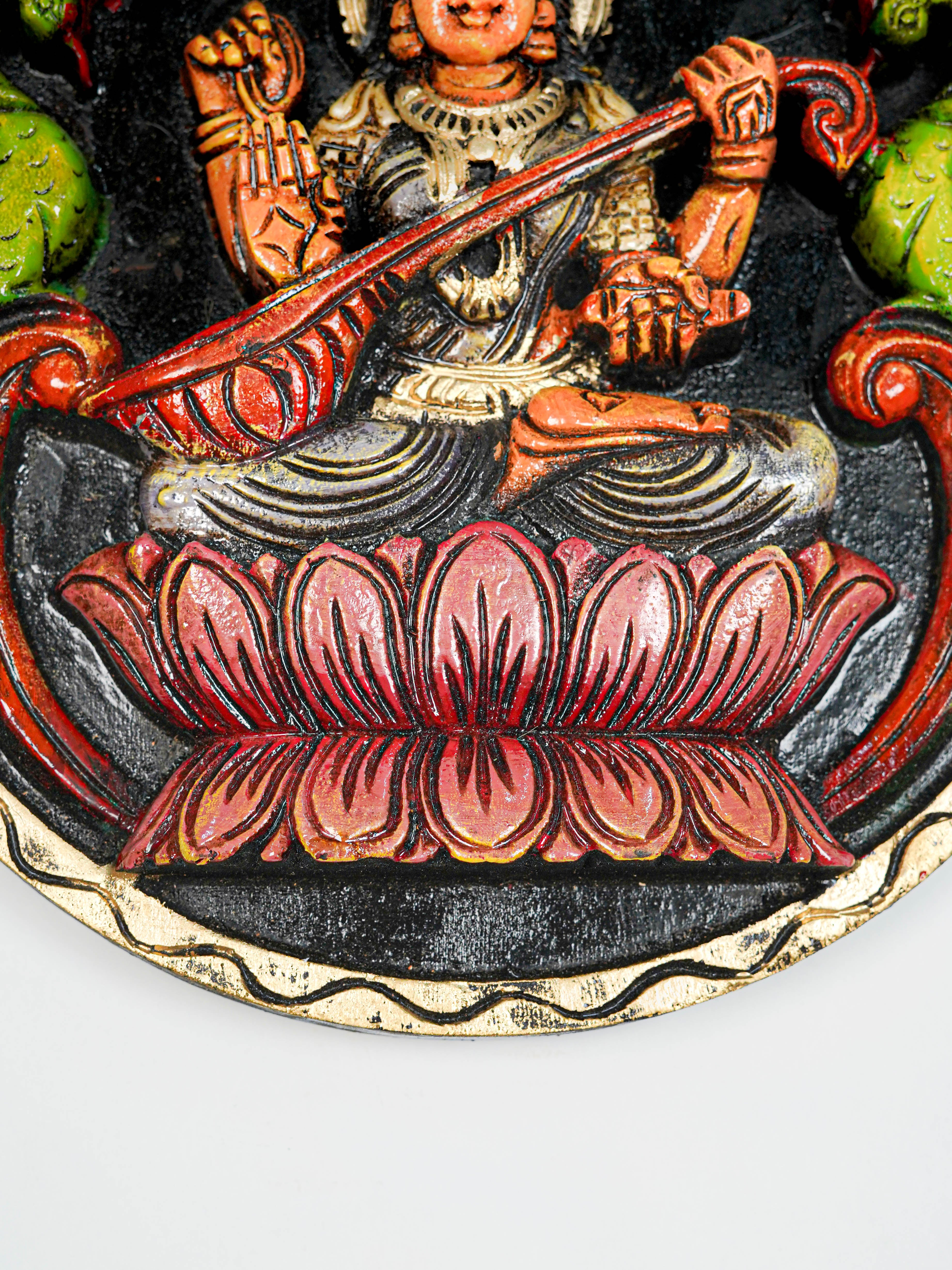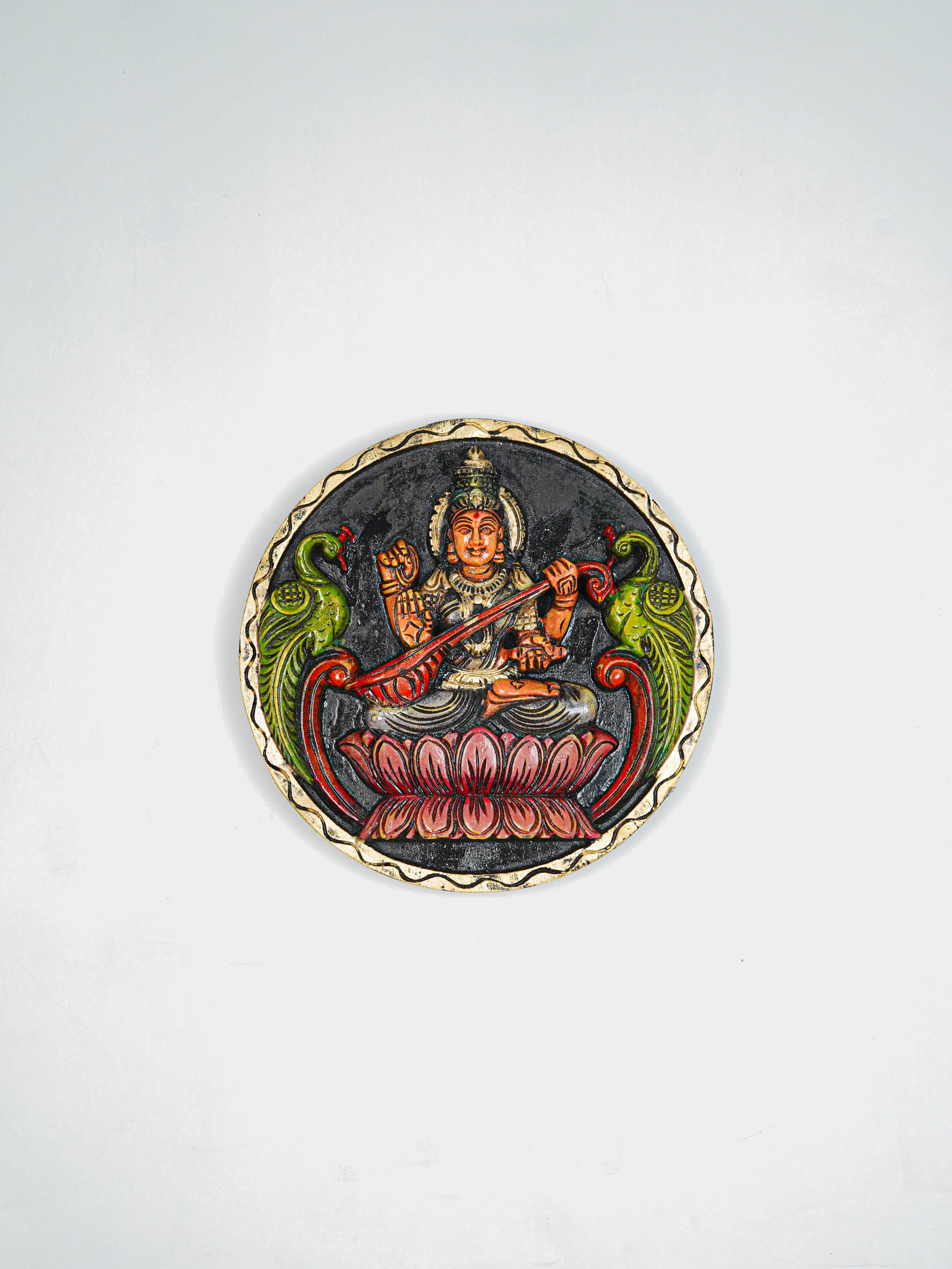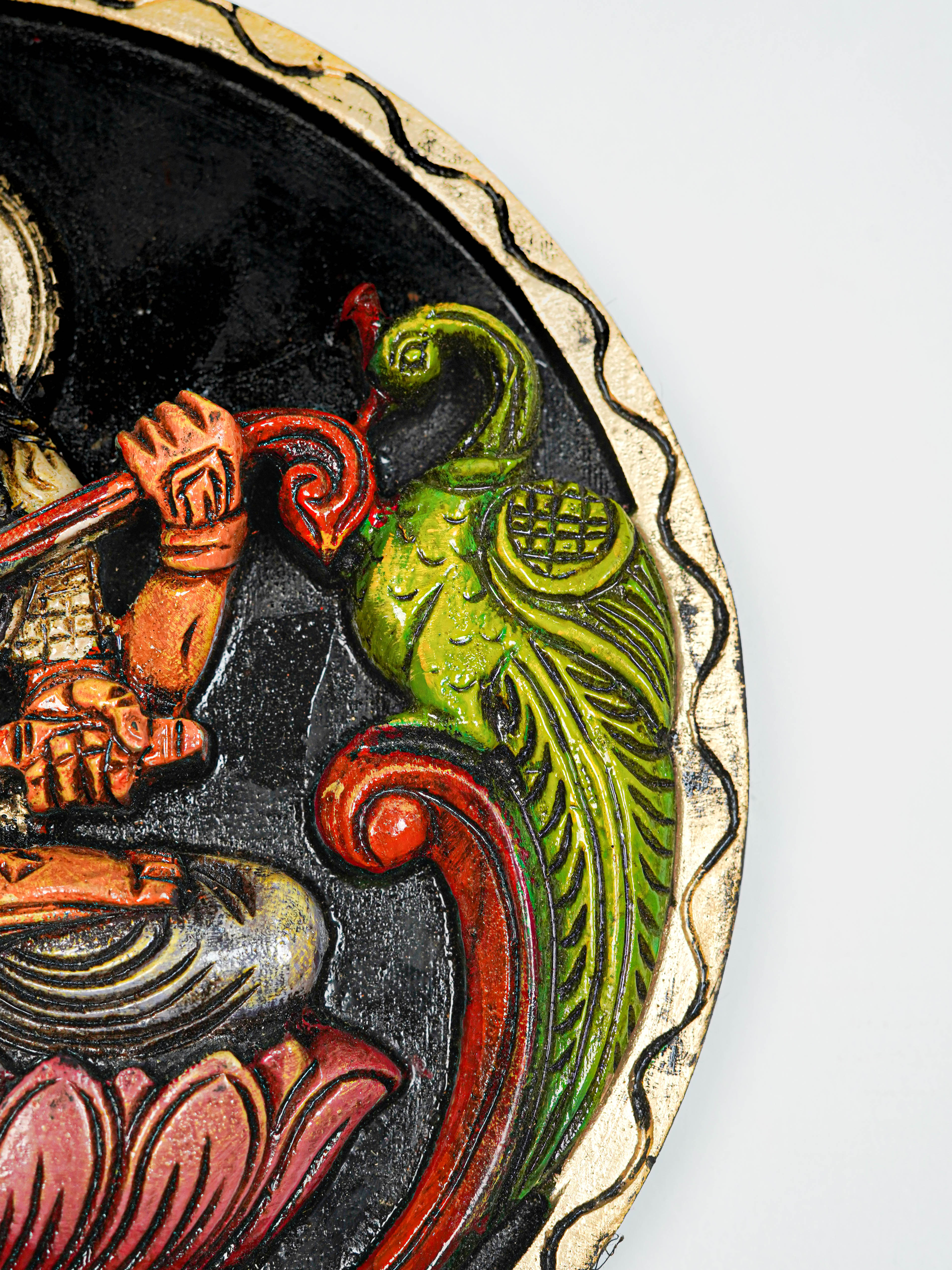 - Beautiful Round Wall Hanging Features a Vibrant and Auspicious Depiction of Lord Lakshmi, Crafted in Rich Colors and Intricate Detailing.