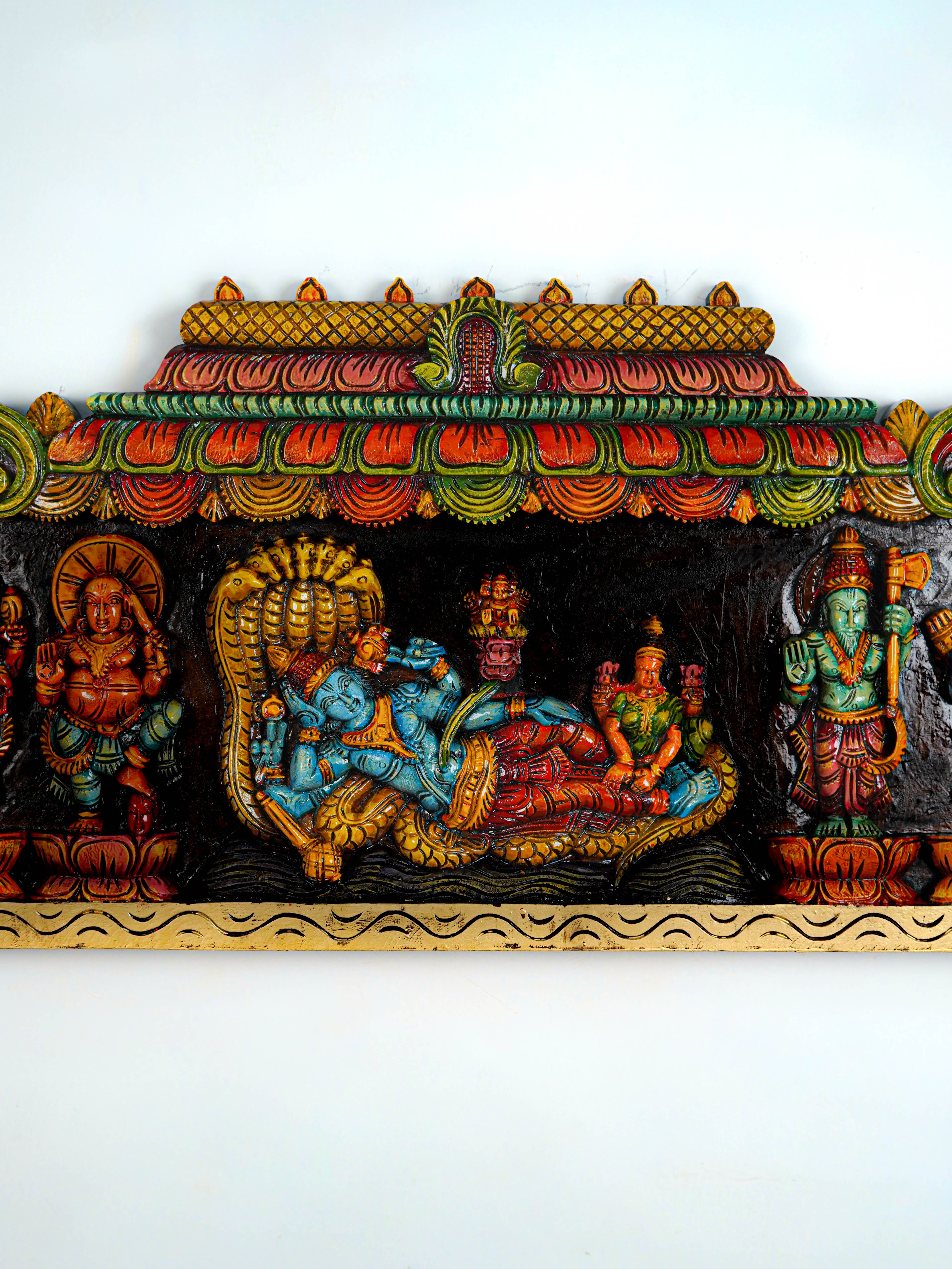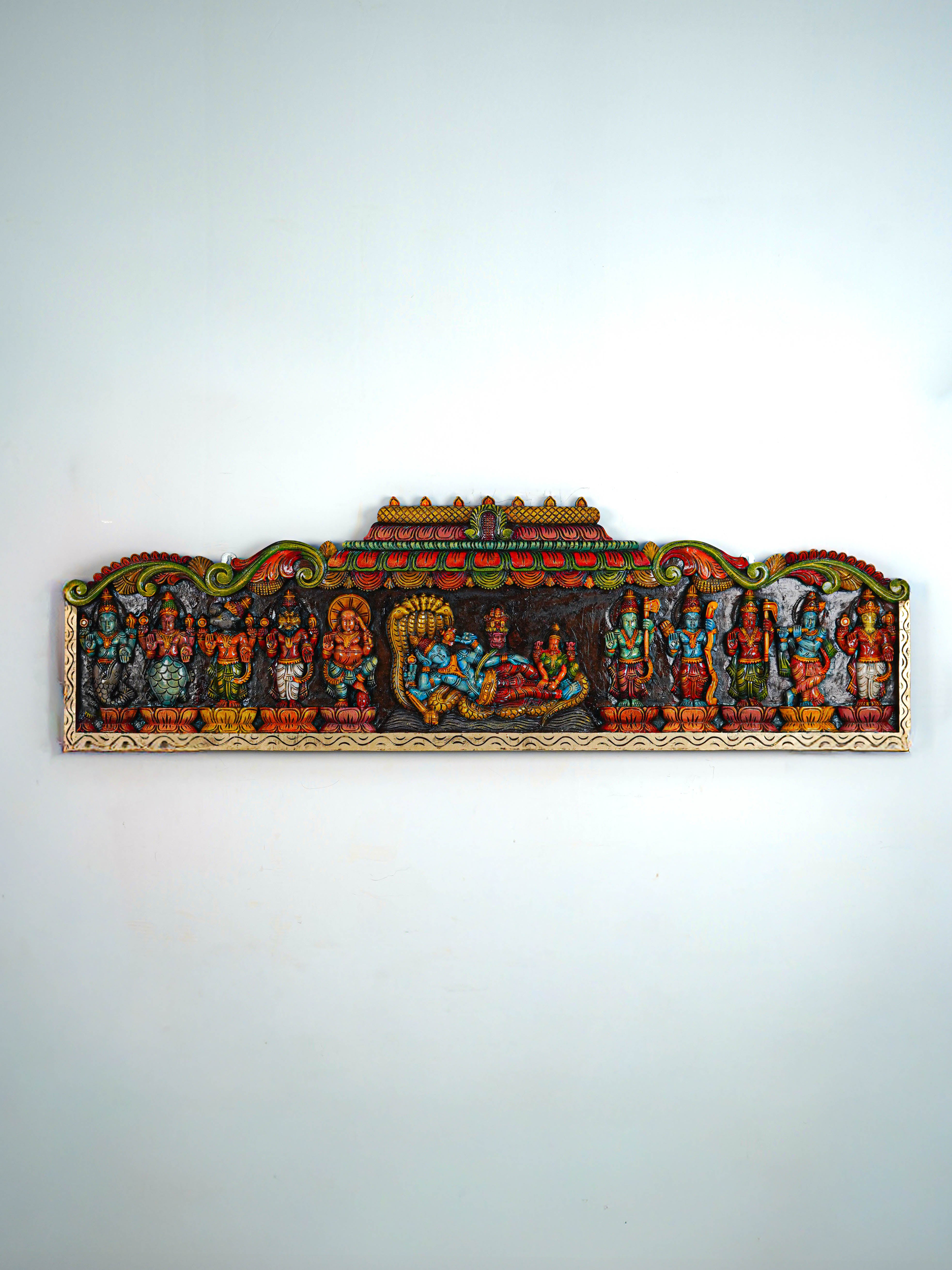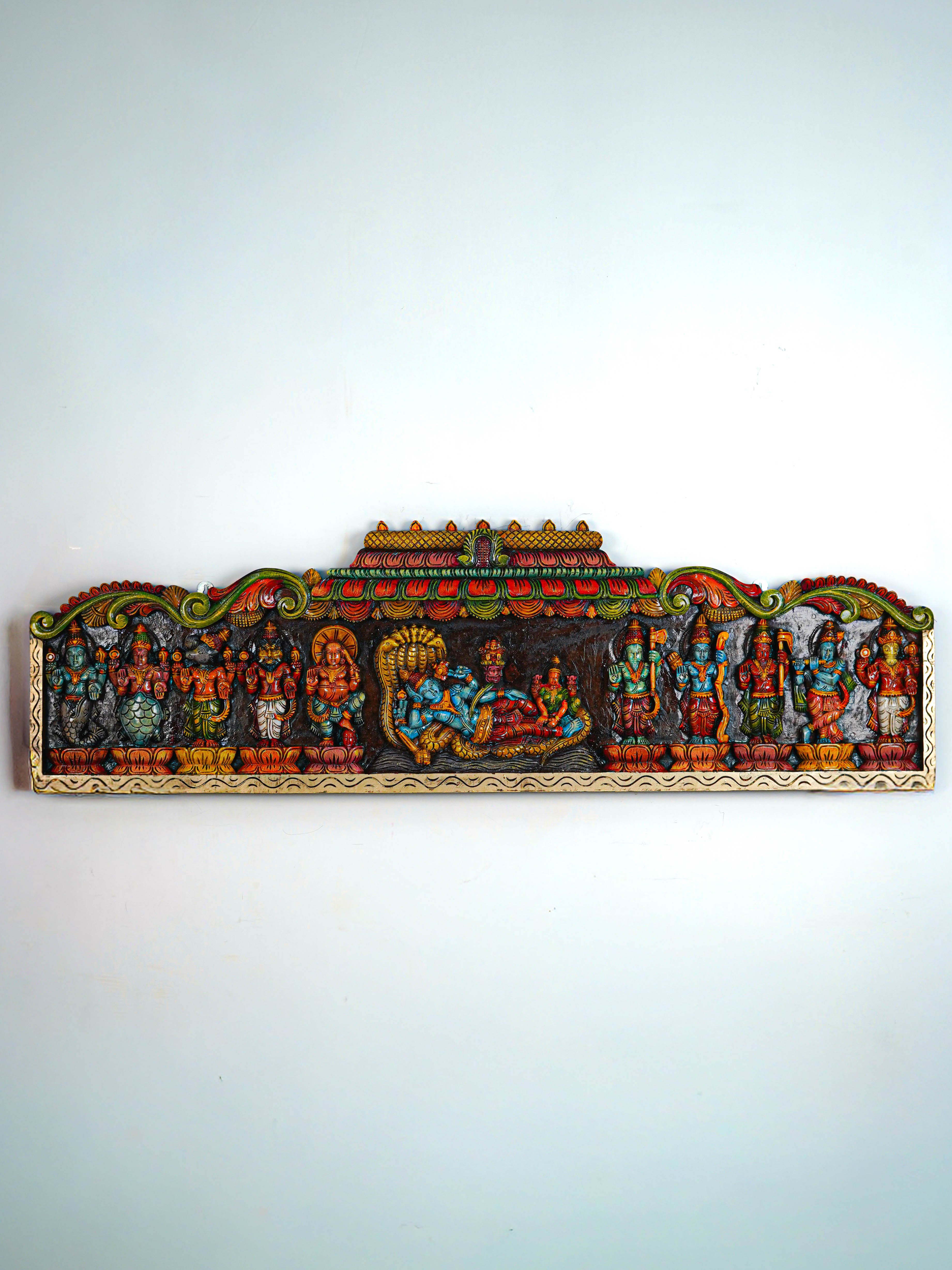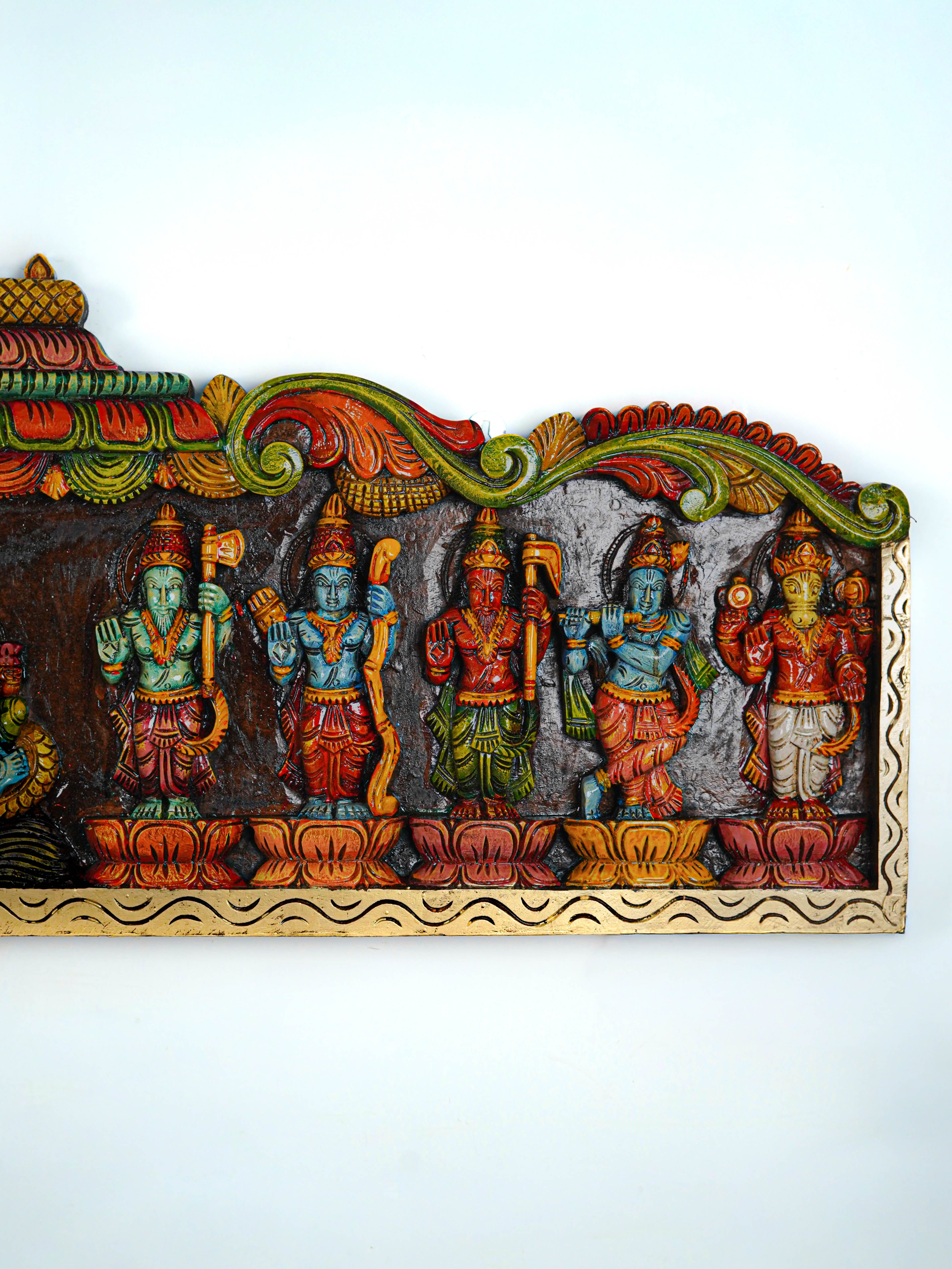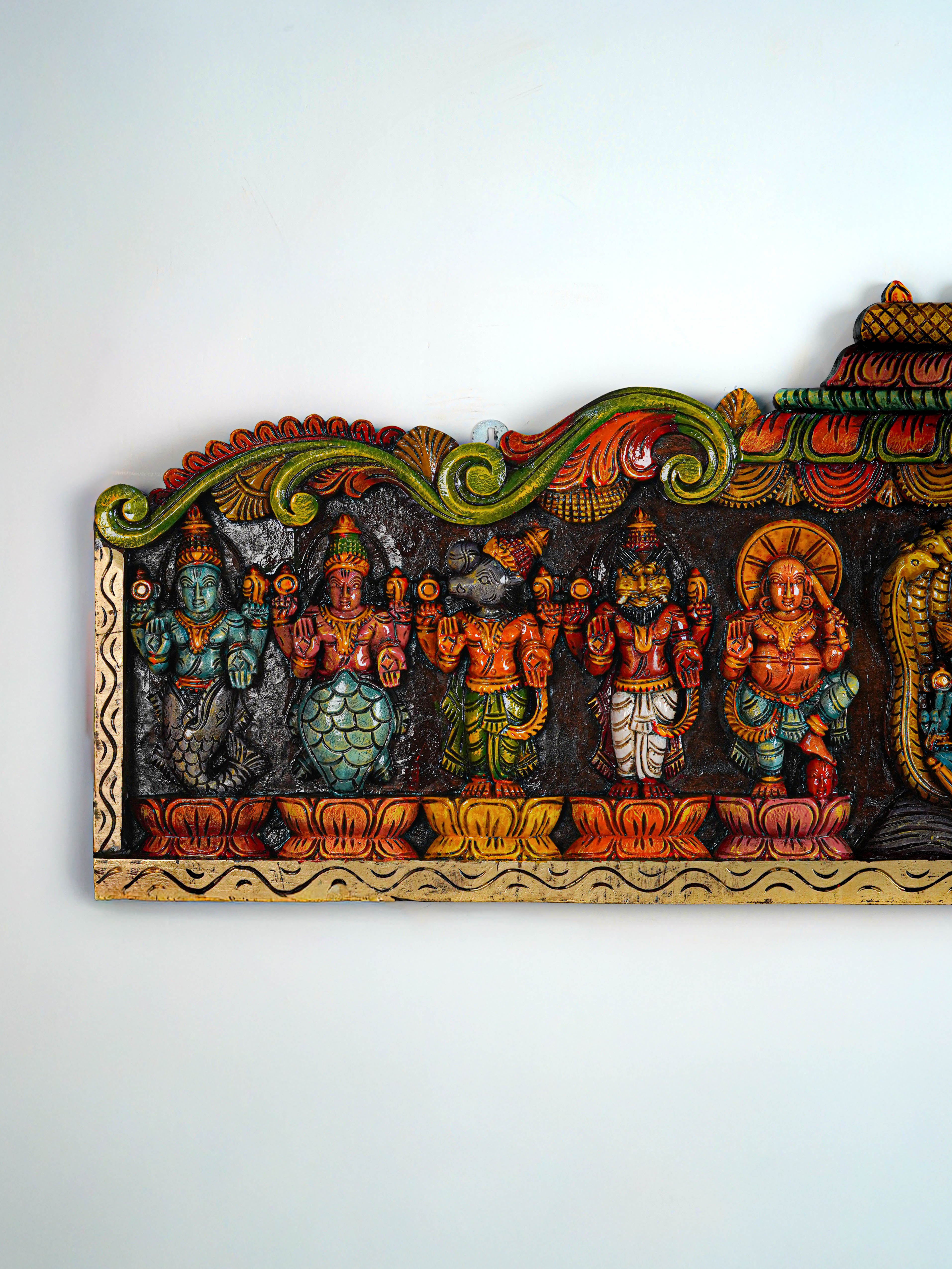 - Celebrate the Divine with this Beautifully Handcrafted Wooden Dasavatharam Panel, featuring Intricate Carvings and Vibrant.