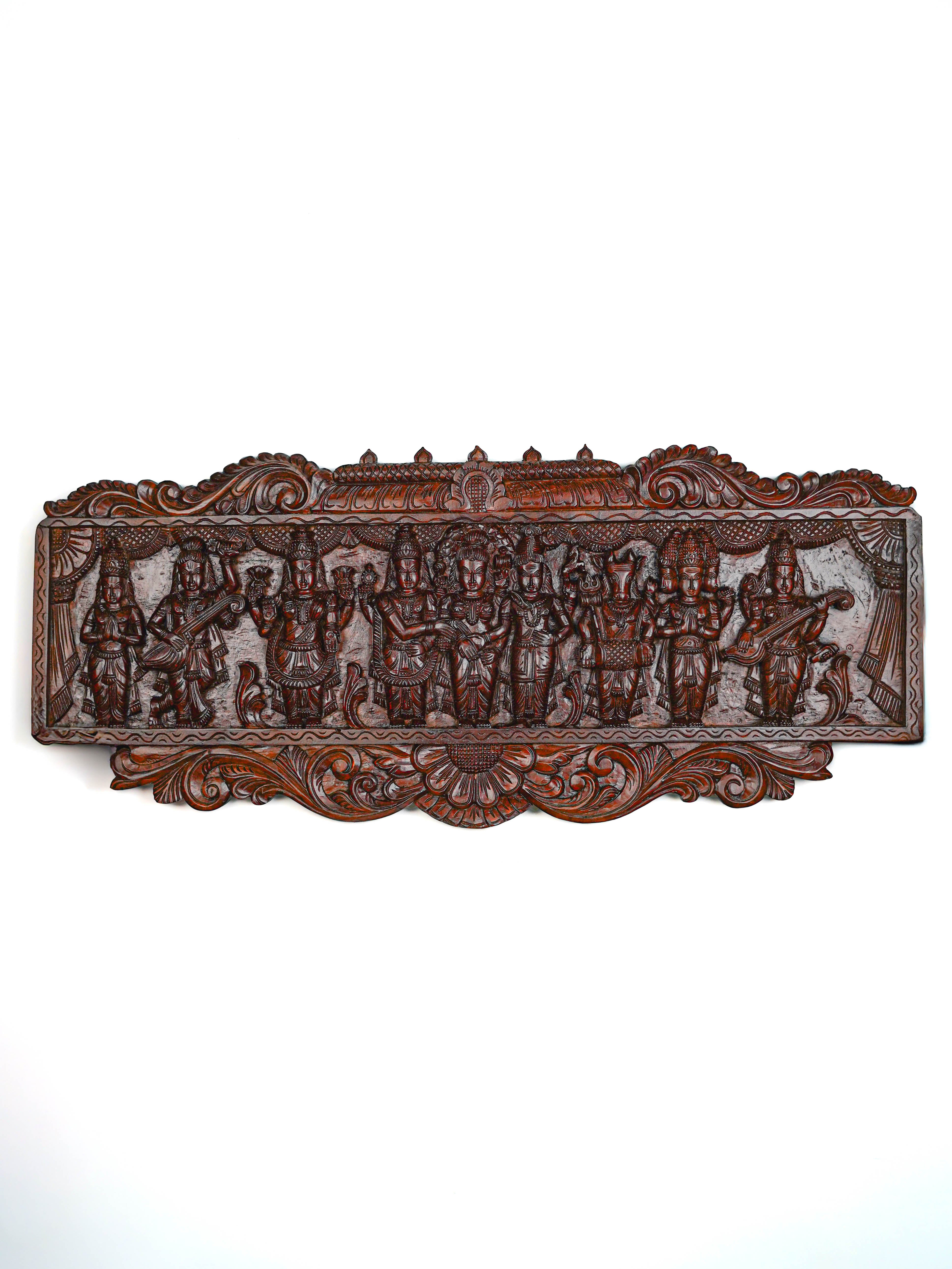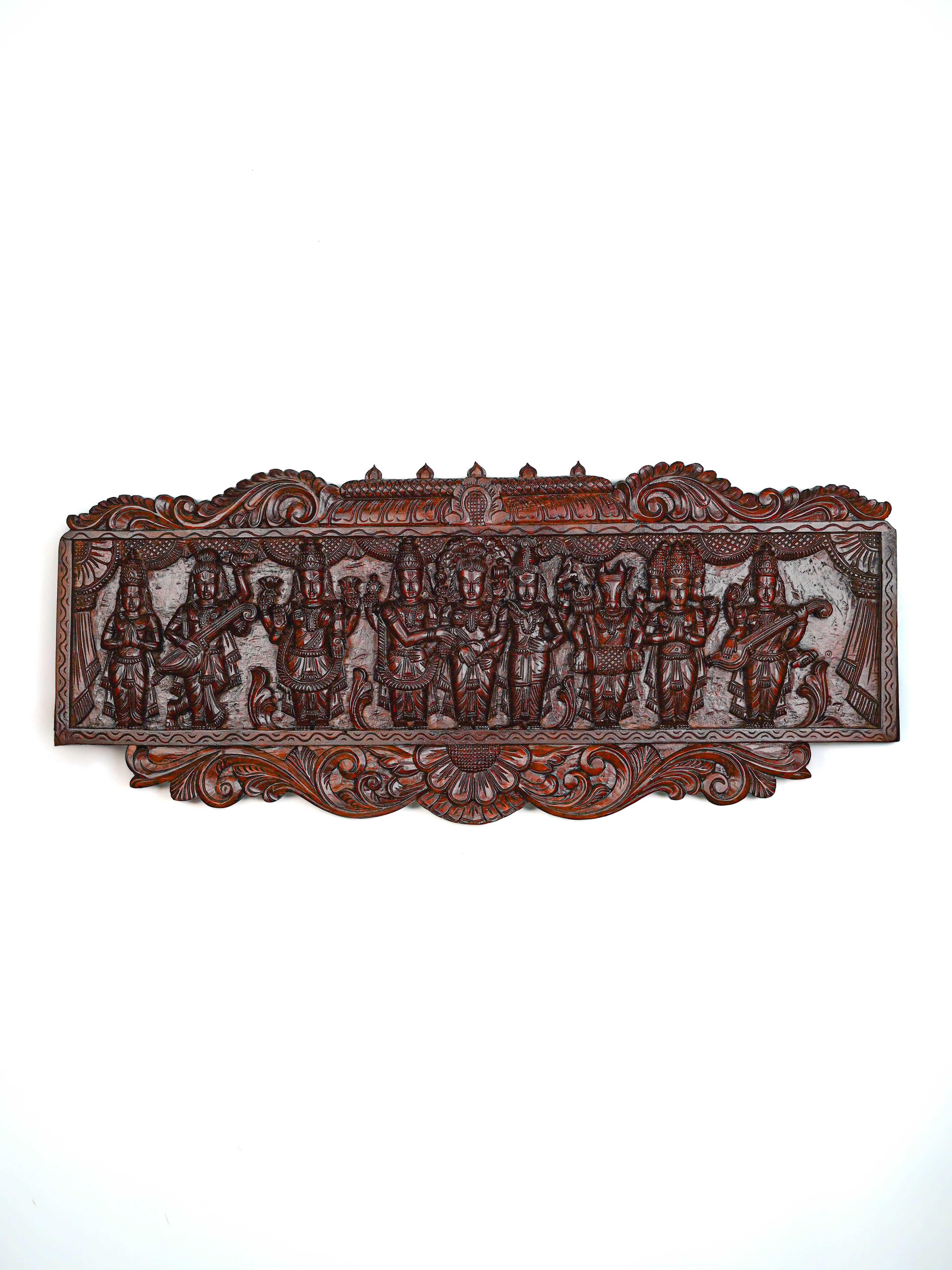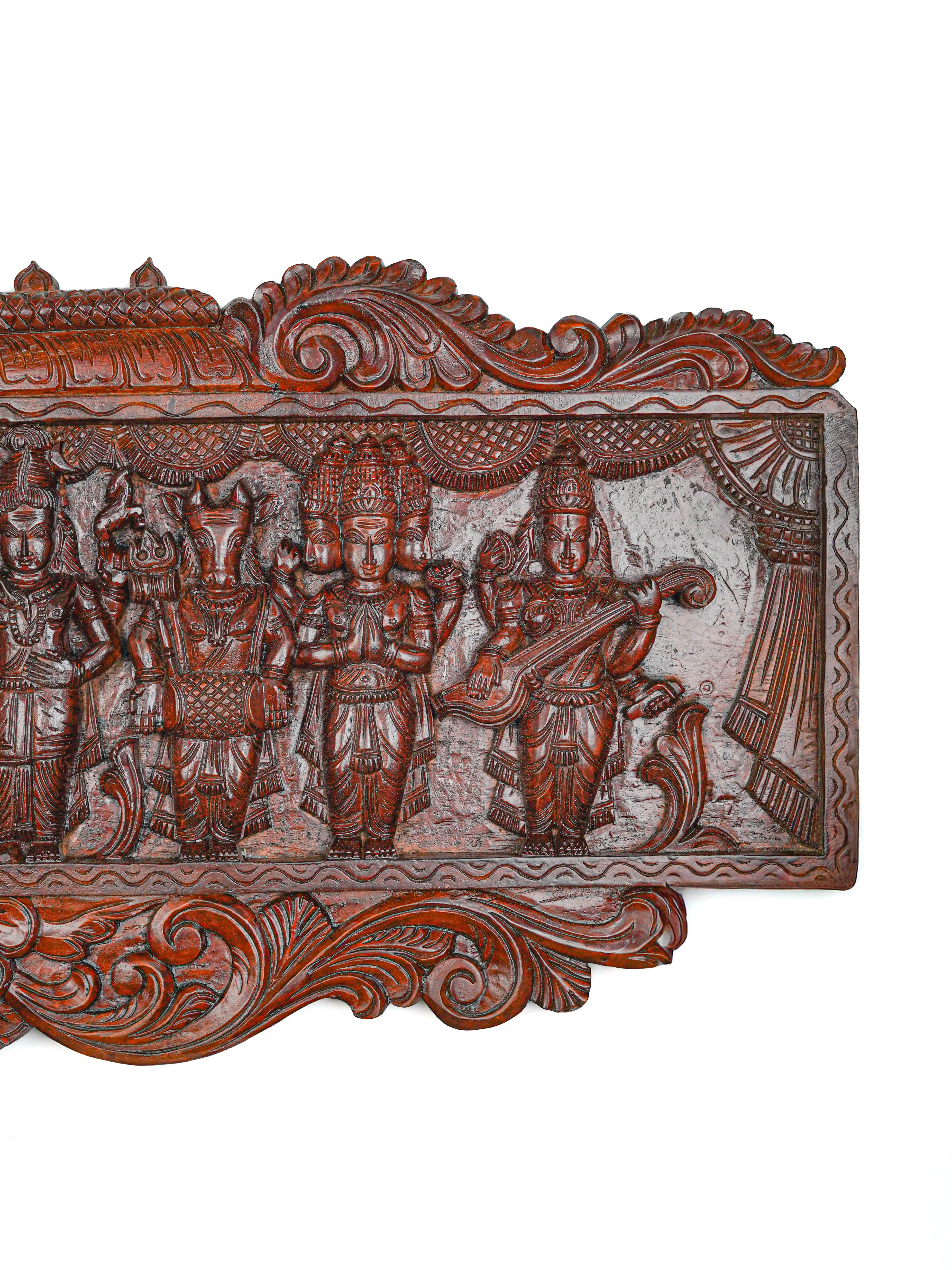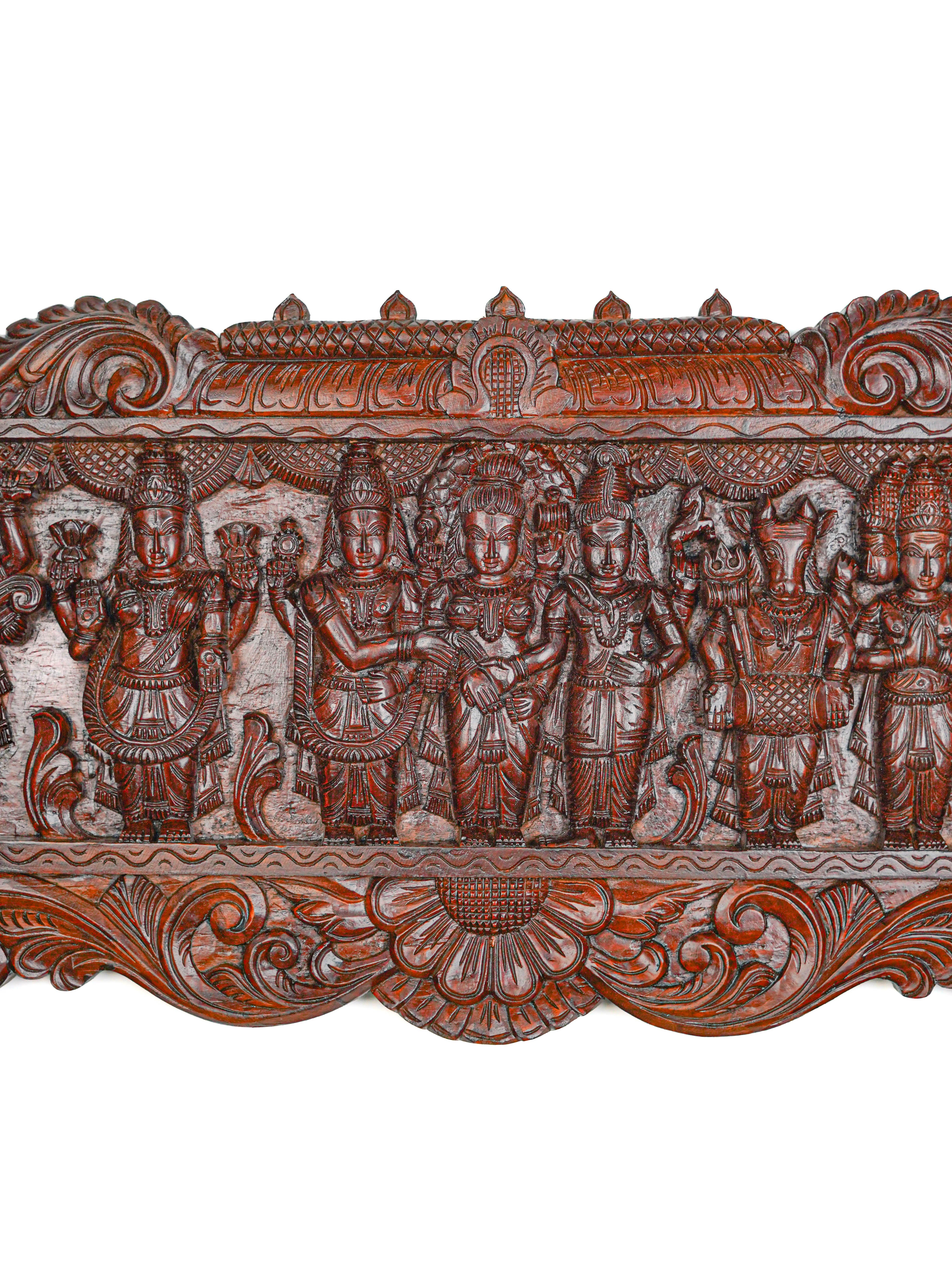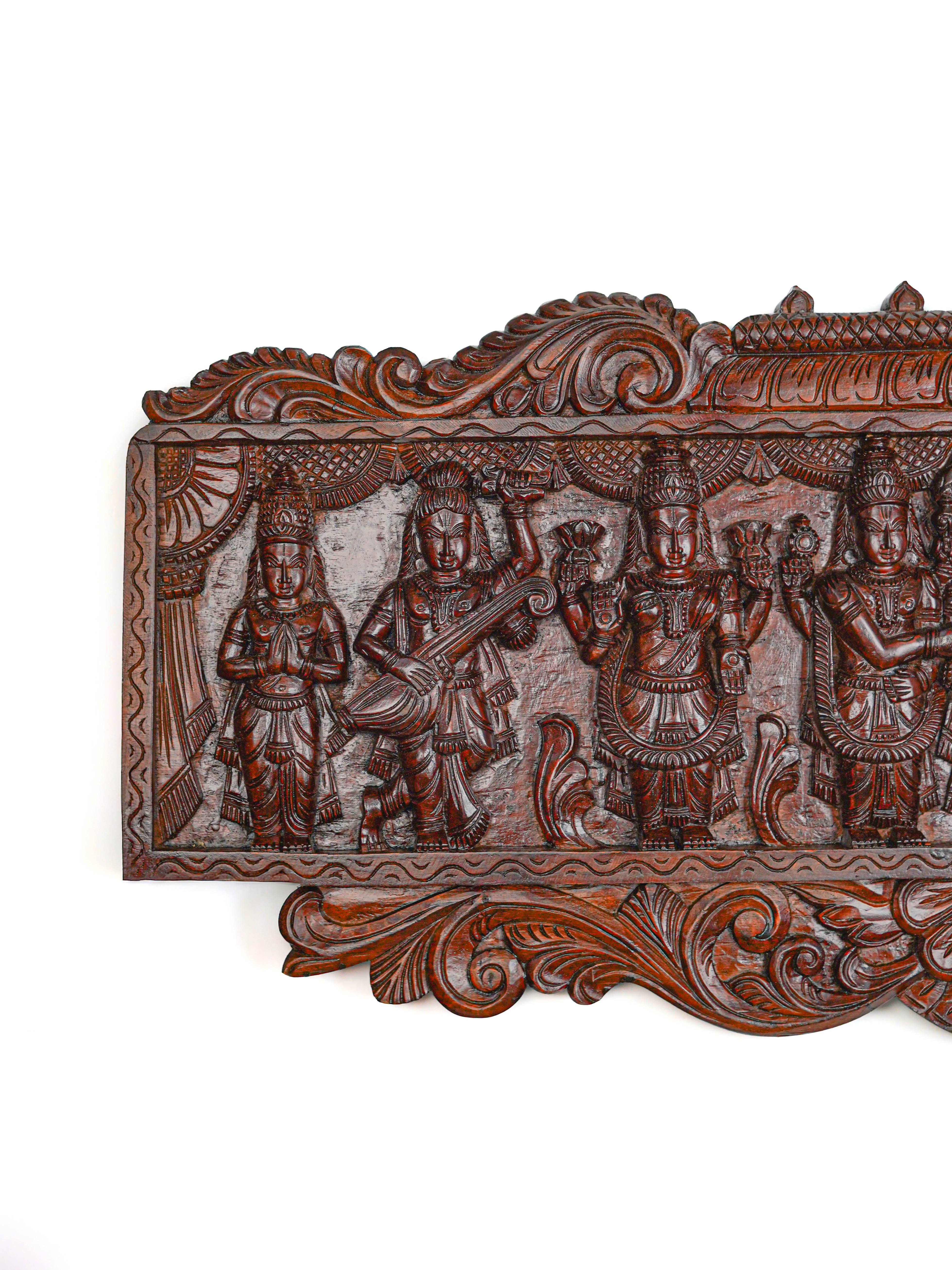 Wooden Carved Meenakshi Kalyanam Wall Hanging Panel - 43 inch - WL5635