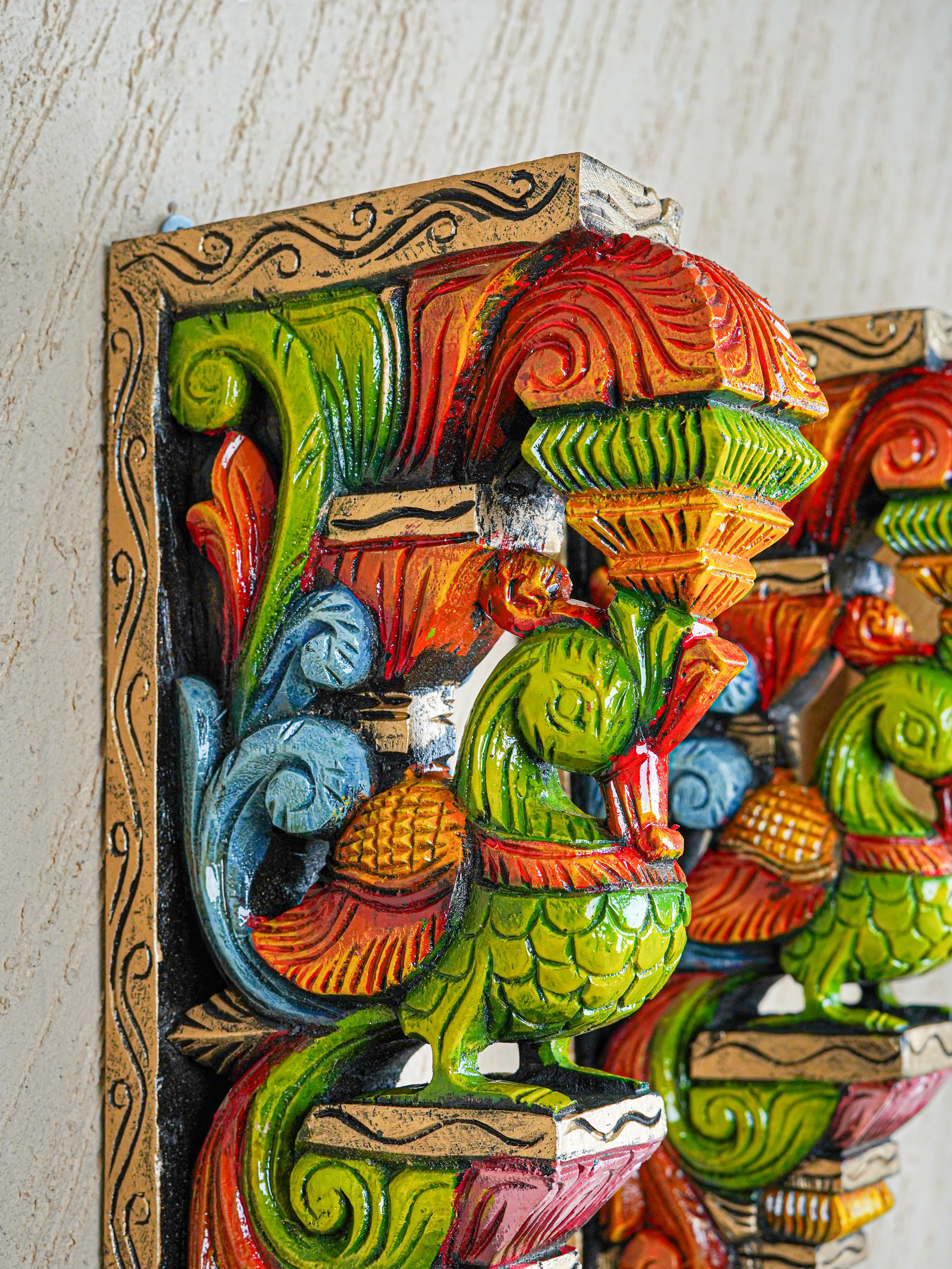 - Color: Hand-Painted in a Palette of Vivid, Multi-Colored Hues, adding Vibrancy while Highlighting the Intricate Carvings.