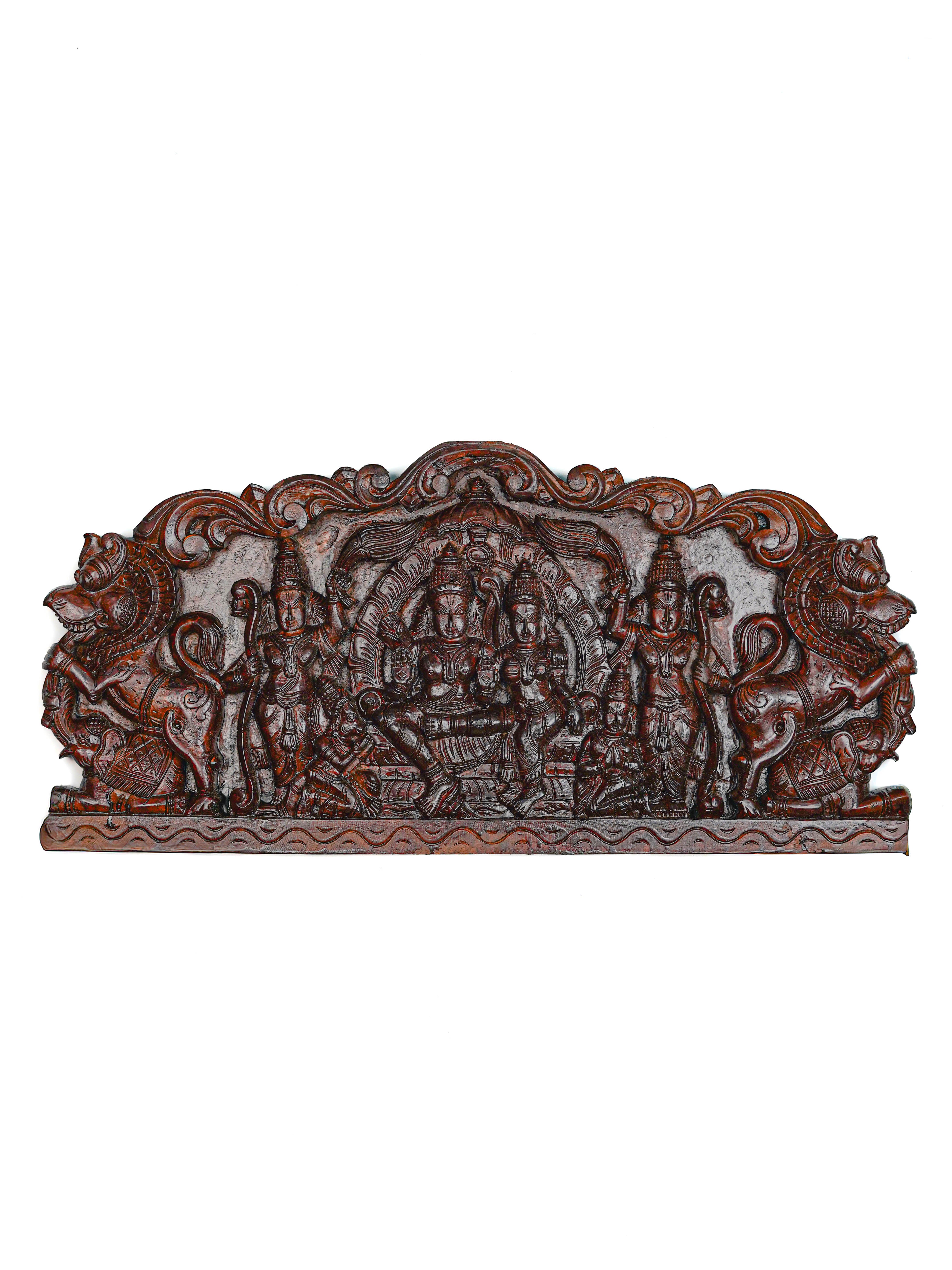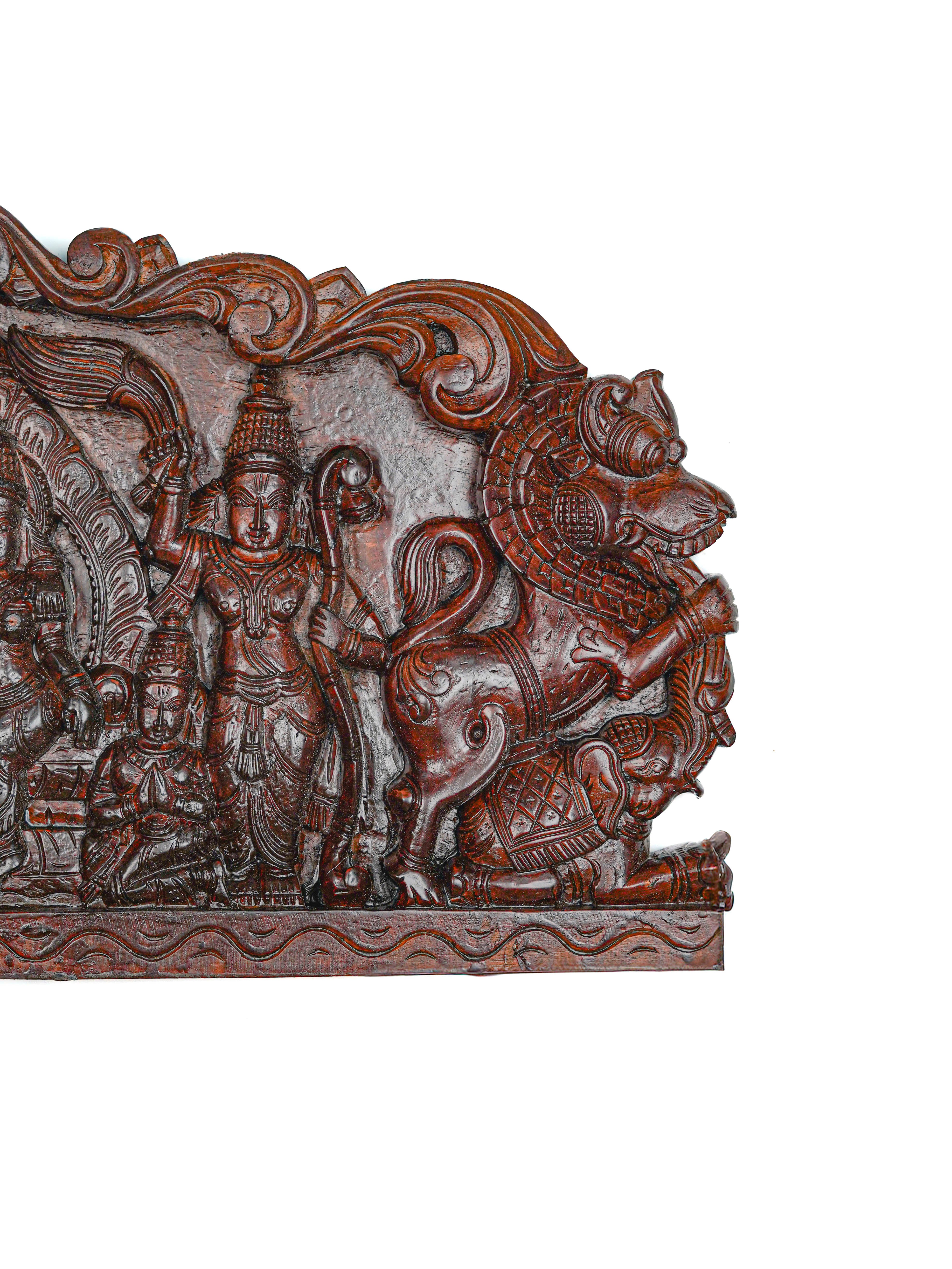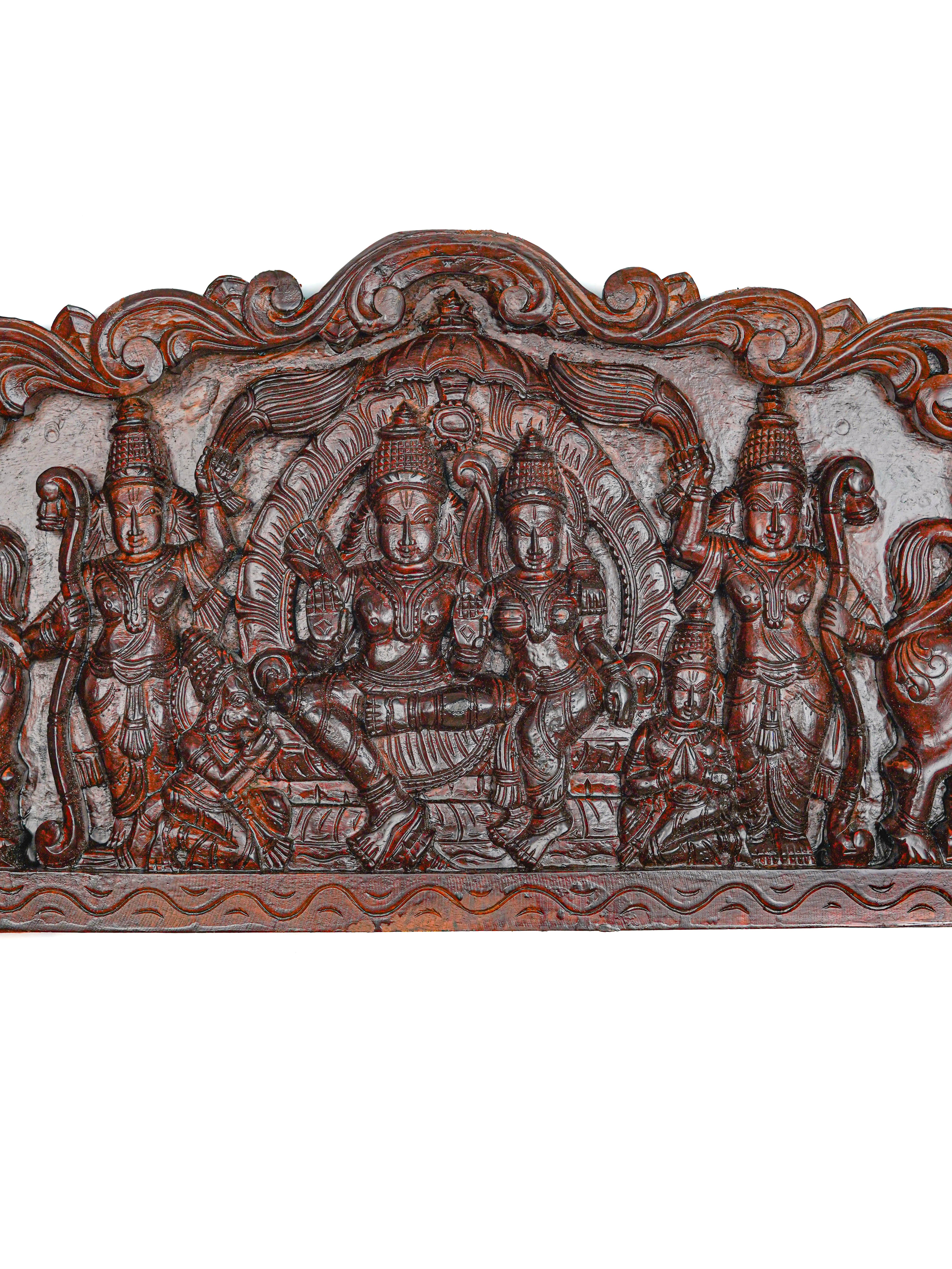Wooden Carved Ram Darbar with Yazhi Wall Hanging Panel - 30 inch - WL5634