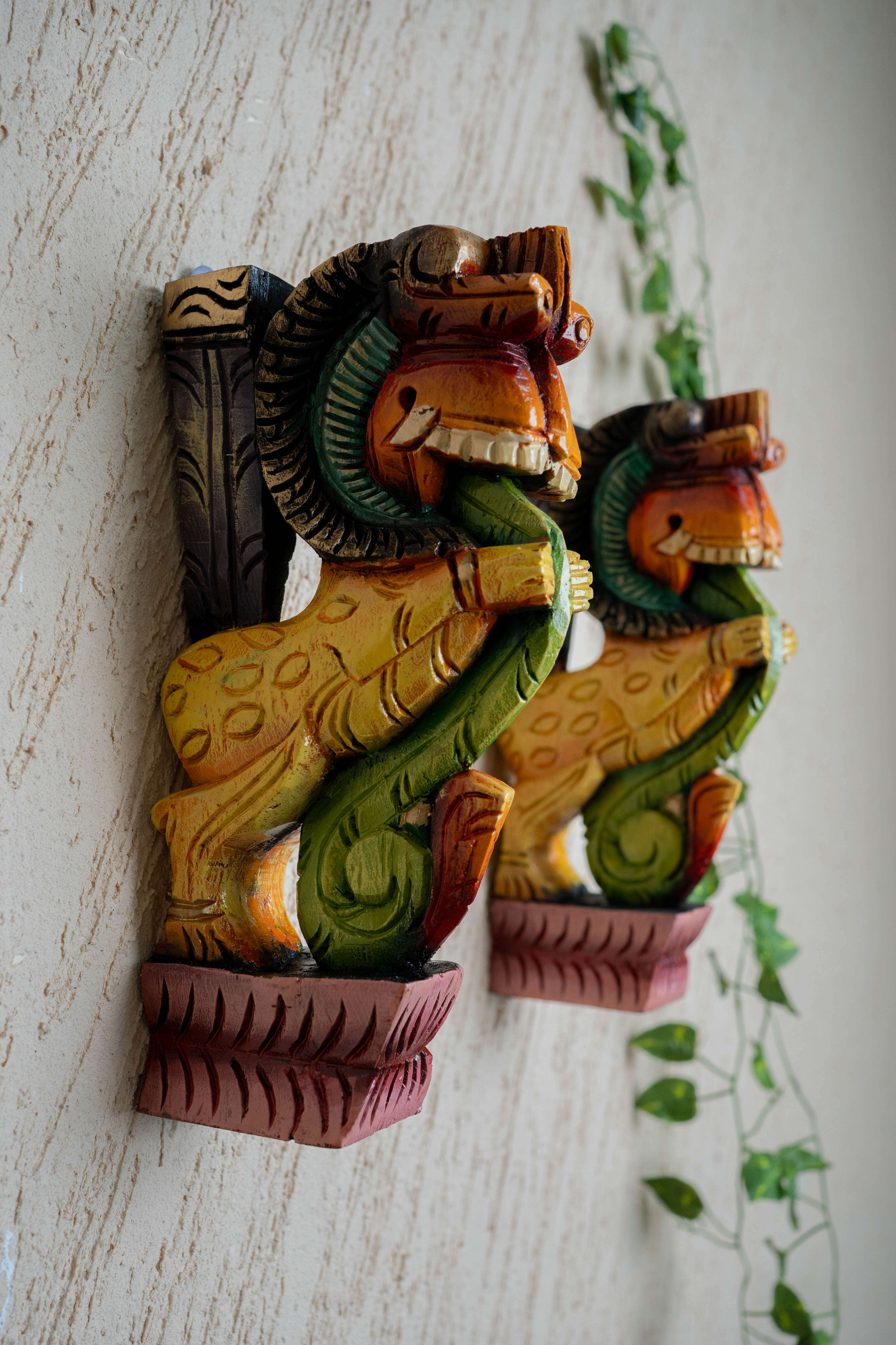 - Yazhi Bracket Set of 2 - Yazhi is a Mythical Creature known for its Lion-like Strength and Protective Symbolism, is a Prominent Motif in Dravidian Temple Architecture.