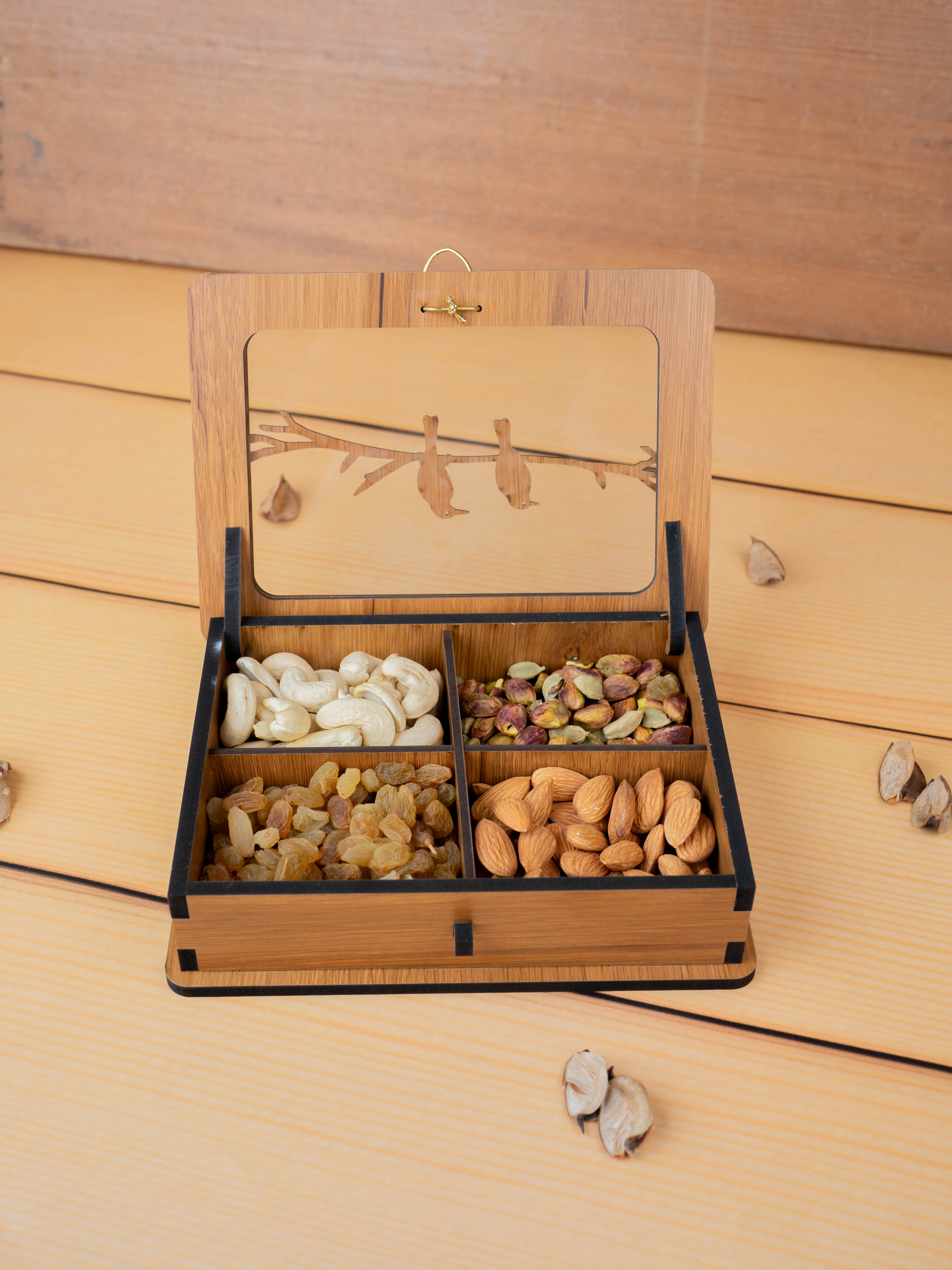 - Inside, the Box is Divided into Four Compartments, Perfect for Neatly Storing and Serving Different Varieties of Dry Fruits, Nuts, Small Snacks