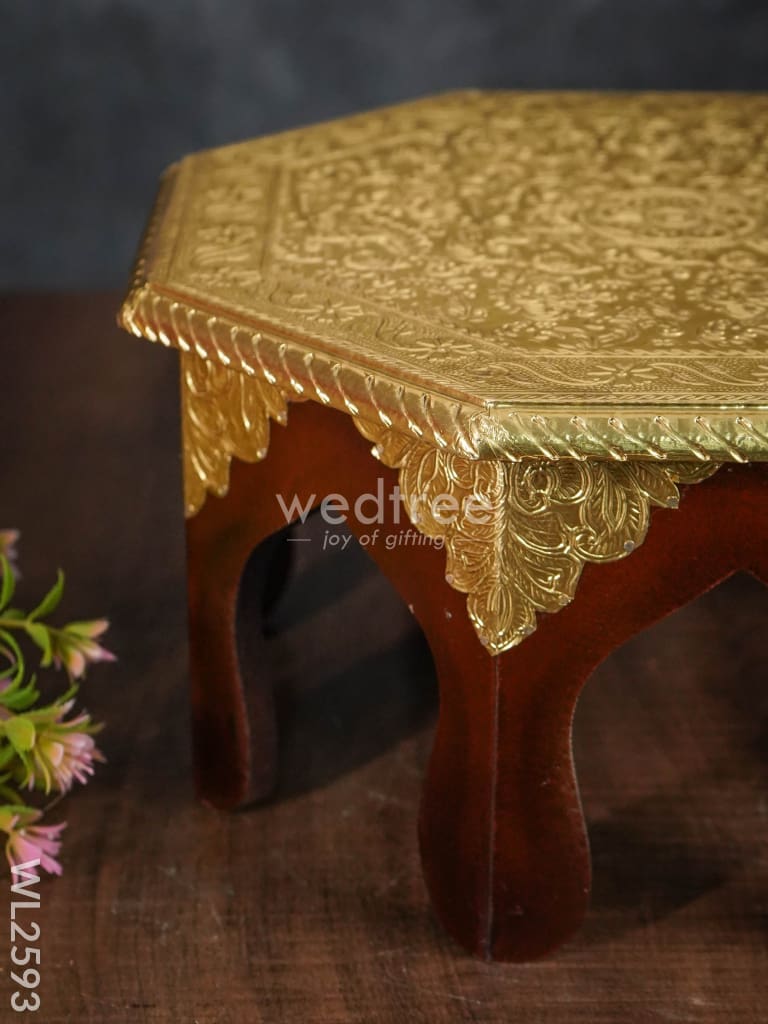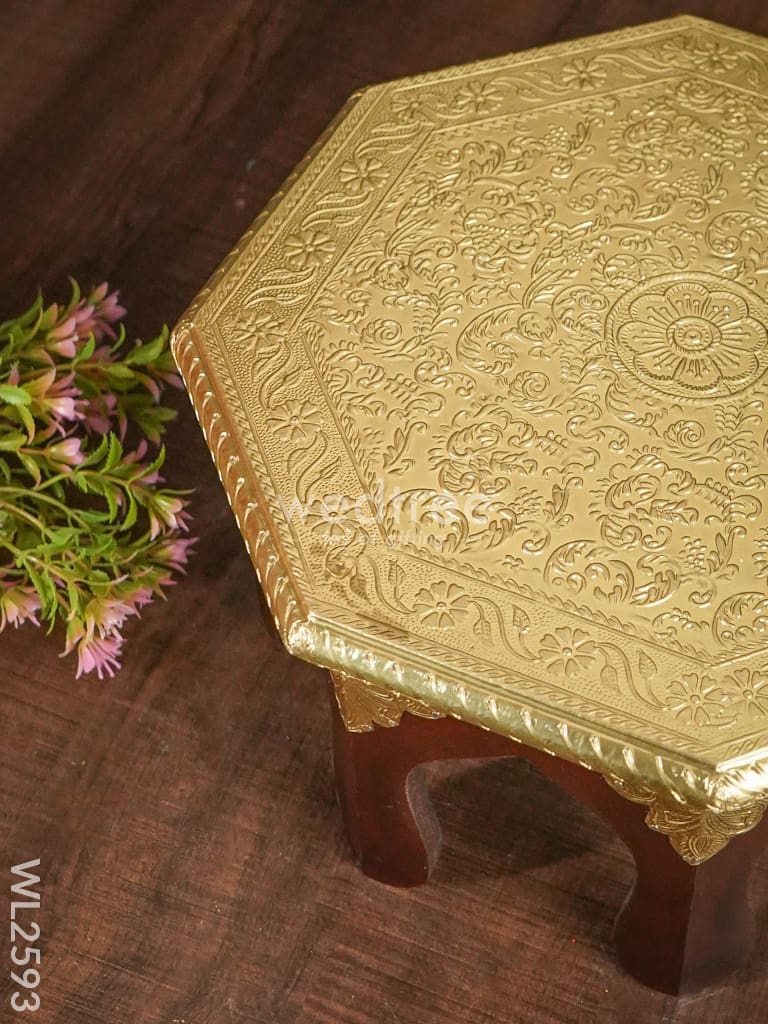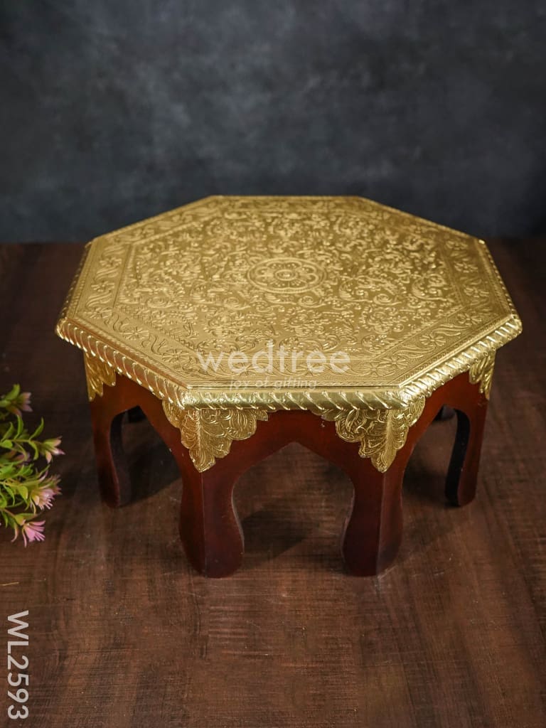 Wooden Stool with Brass Finish - 12 inch - WL2593