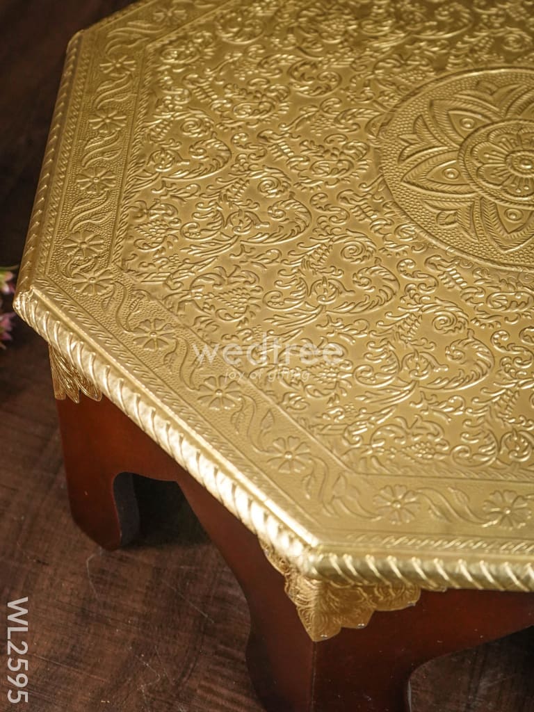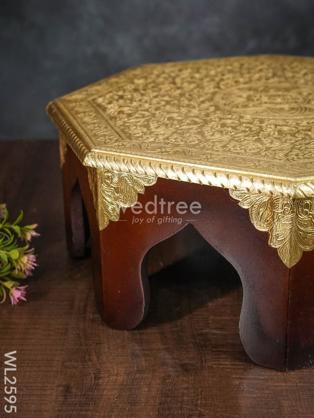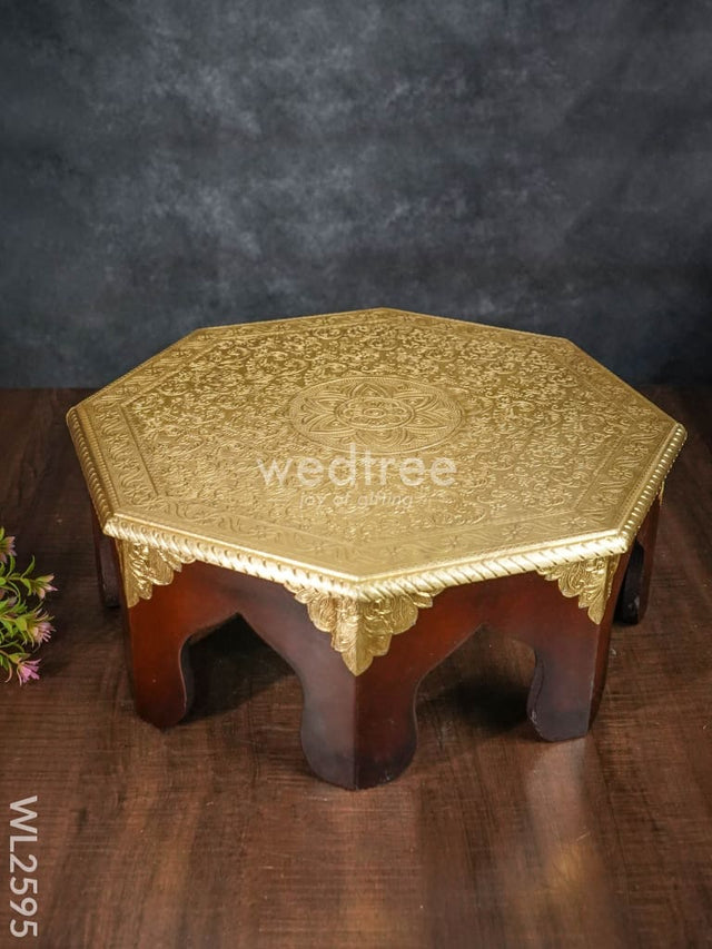Wooden Stool with Brass Finish - 16 inch - WL2595