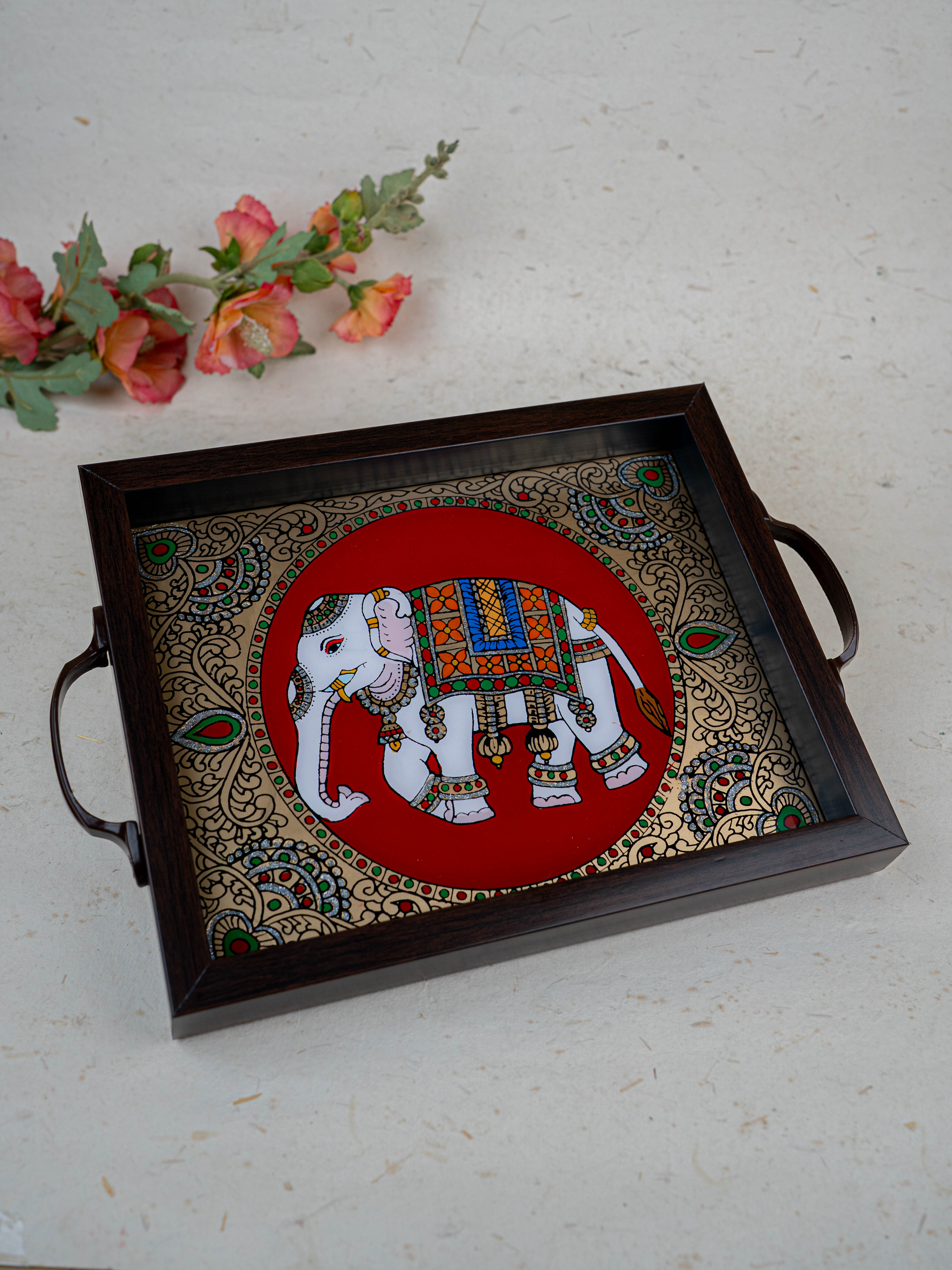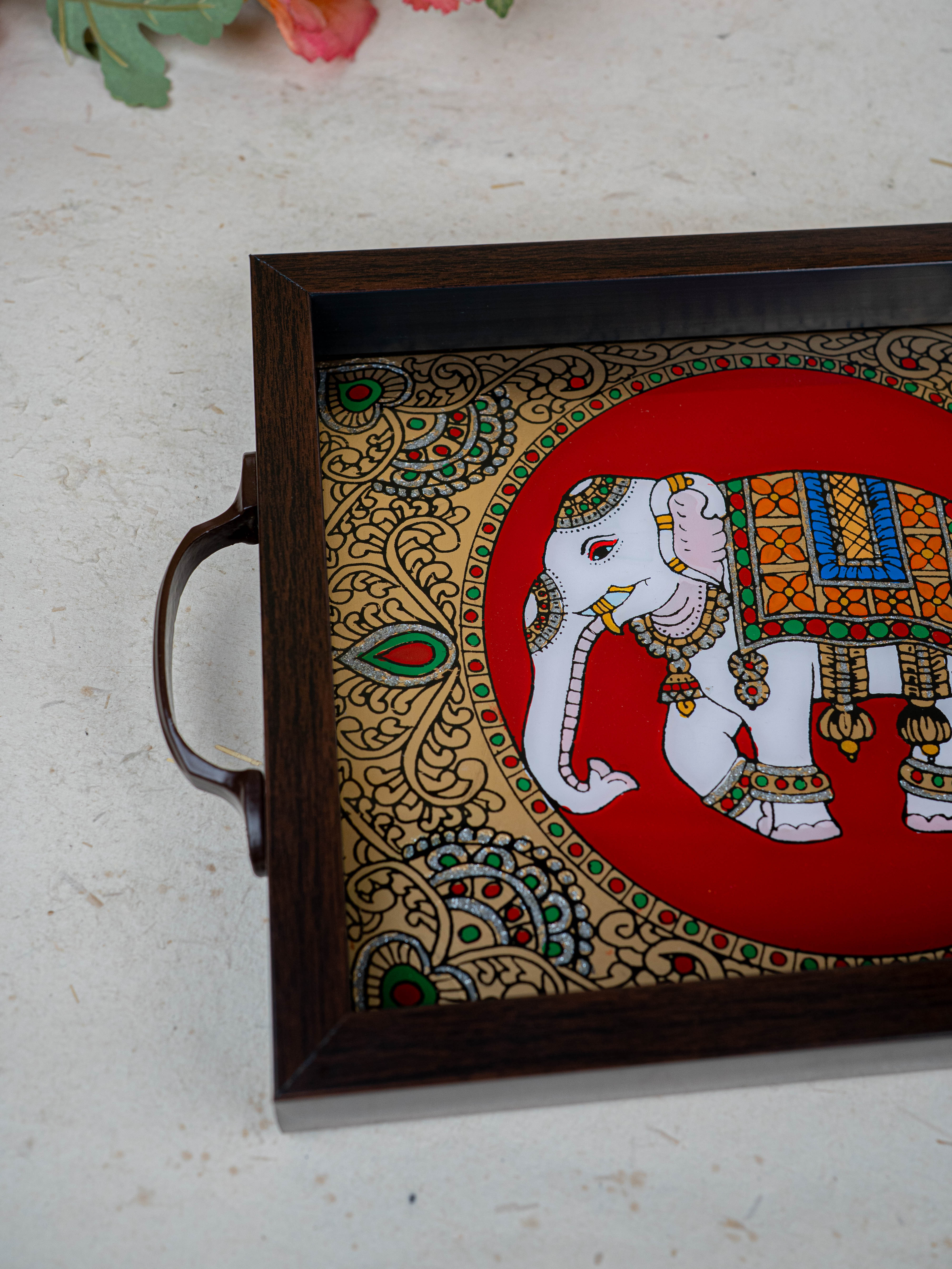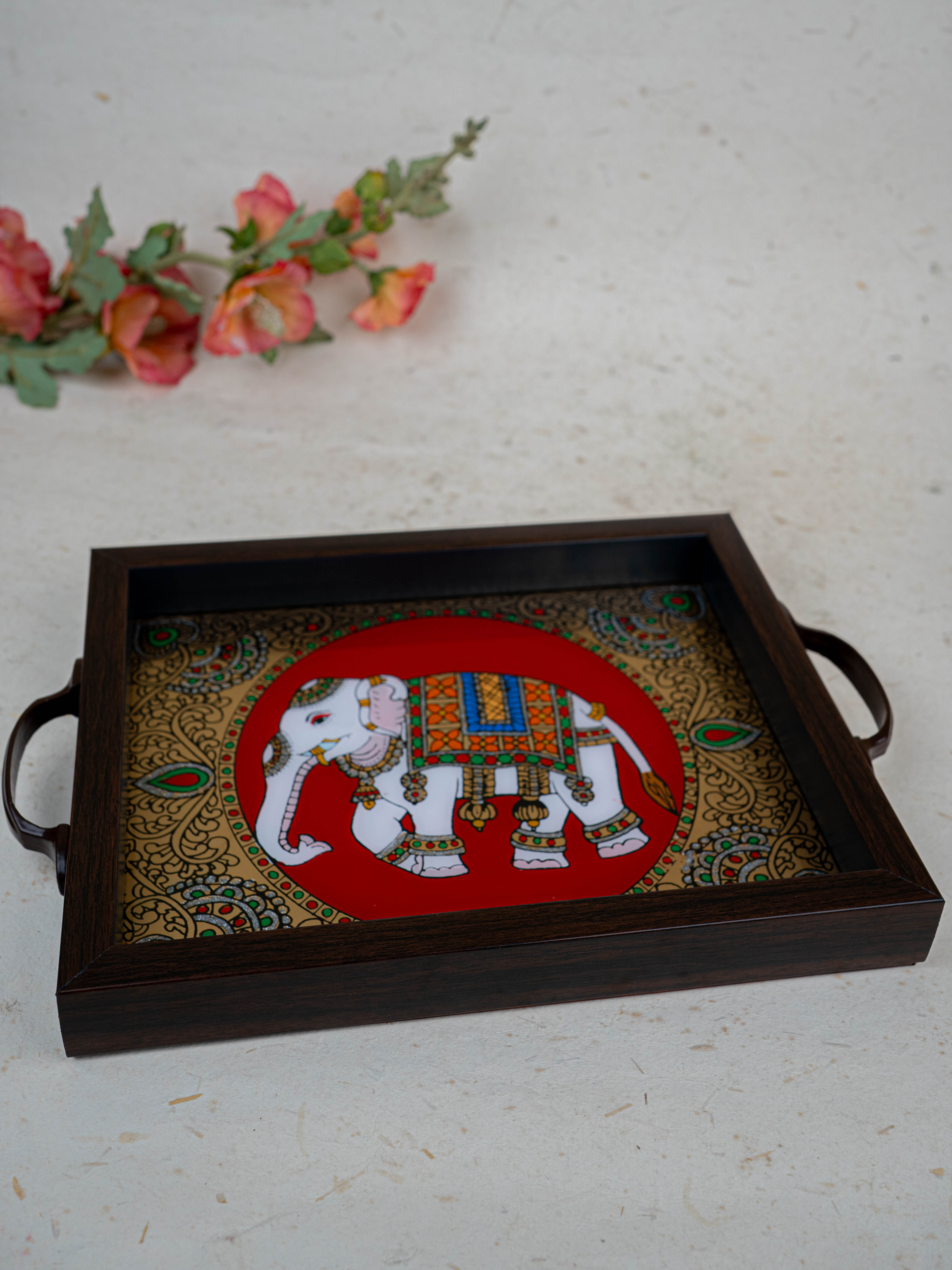- The exquisite make depicts Elephant in reverse acrylic painting style completing the overall look and adds charm to the tray!