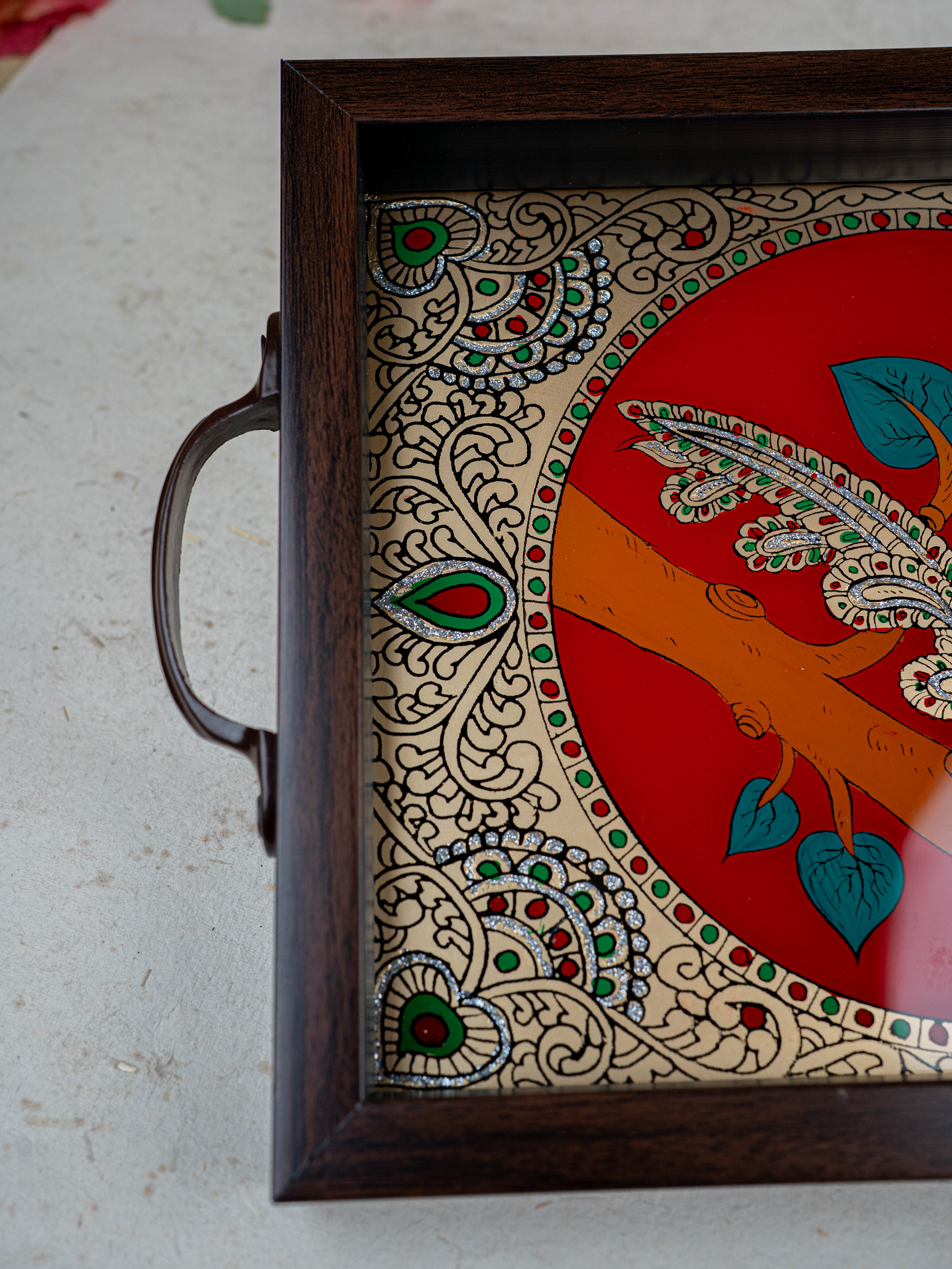 Wooden Tray with Reverse Acrylic Painting - WL3865