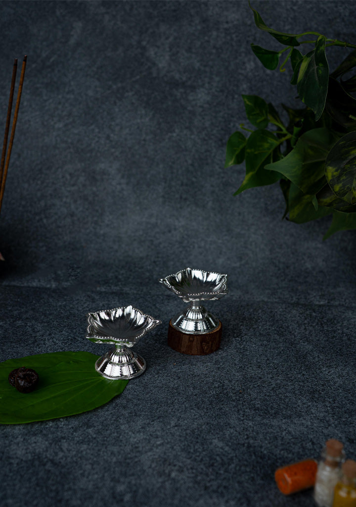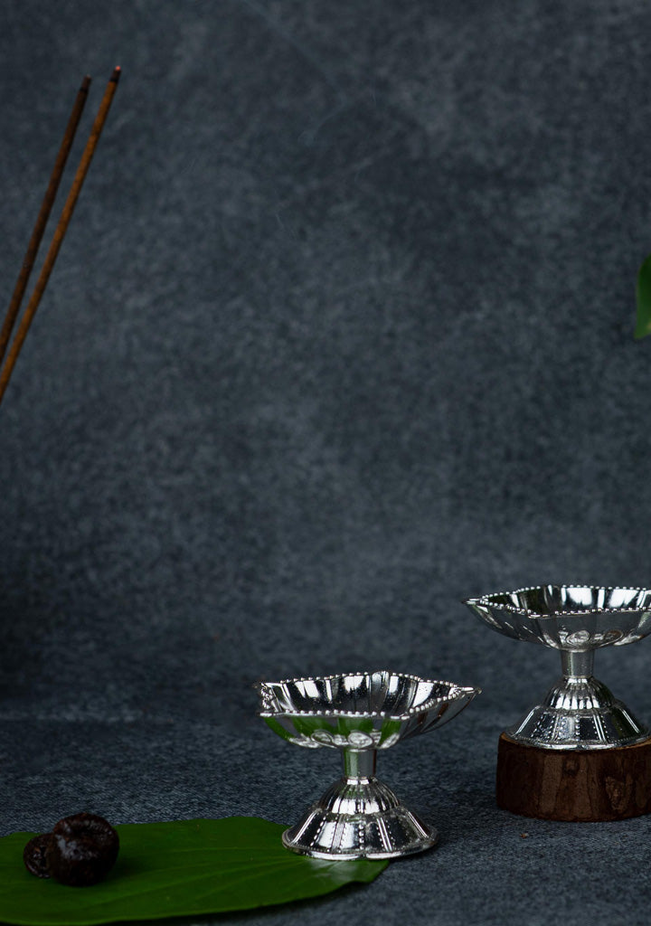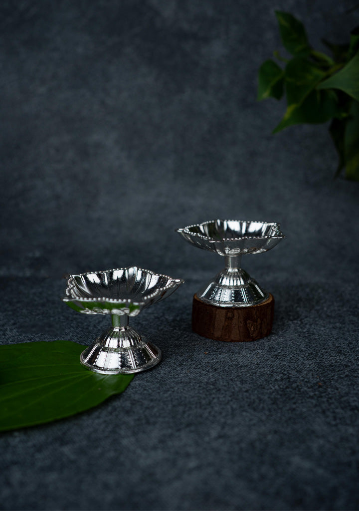Zinc Alloy - Five Face Diya - Set of 2 - Silver - WBG1875-2