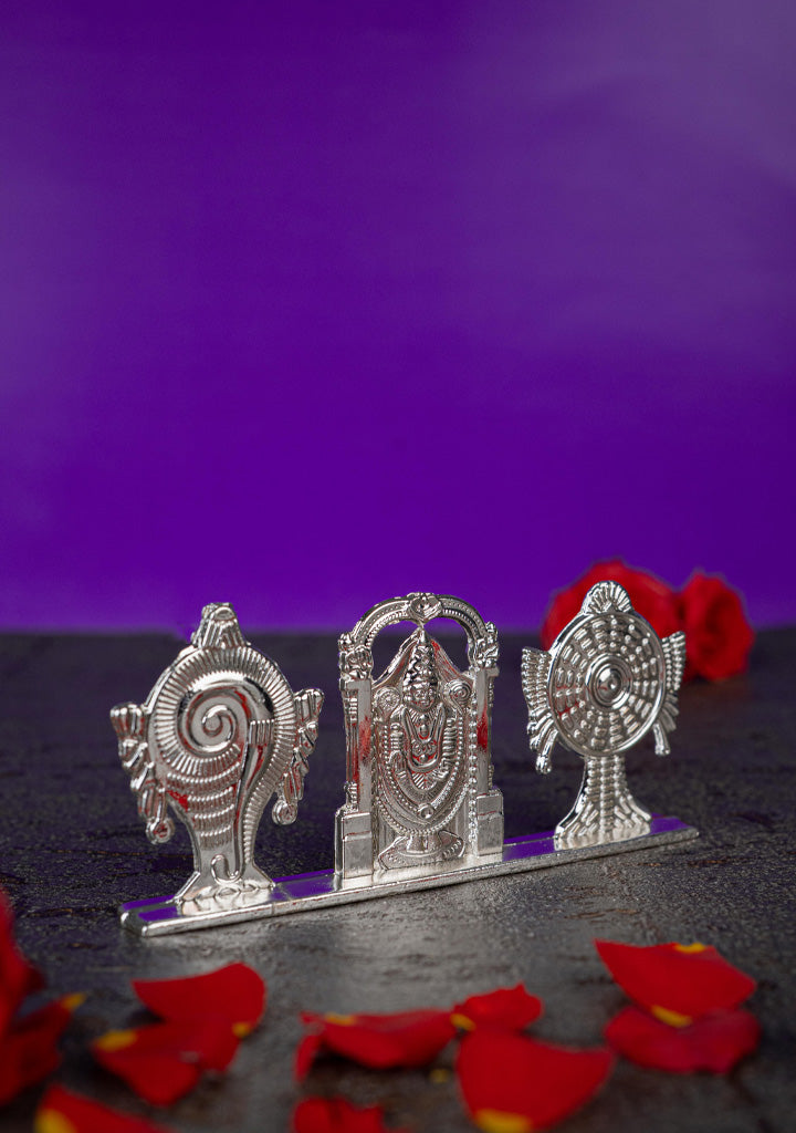 Zinc Alloy Tirupathi Balaji with Shank and Chakra - Silver - WBG1843
